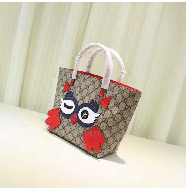 GUCCI-477488 9774 구찌 GG 수프림 캔버스 올빼미 트리밍 토트 백 레드