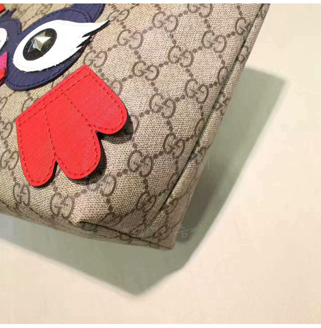 베이지 에보니 GG 수프림 캔버스 올빼미 모양 트리밍 토트 백.