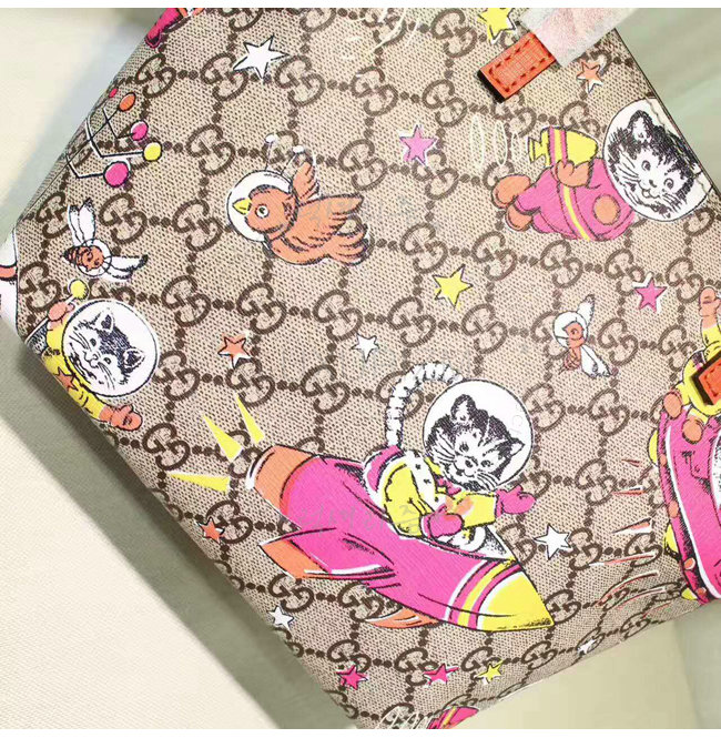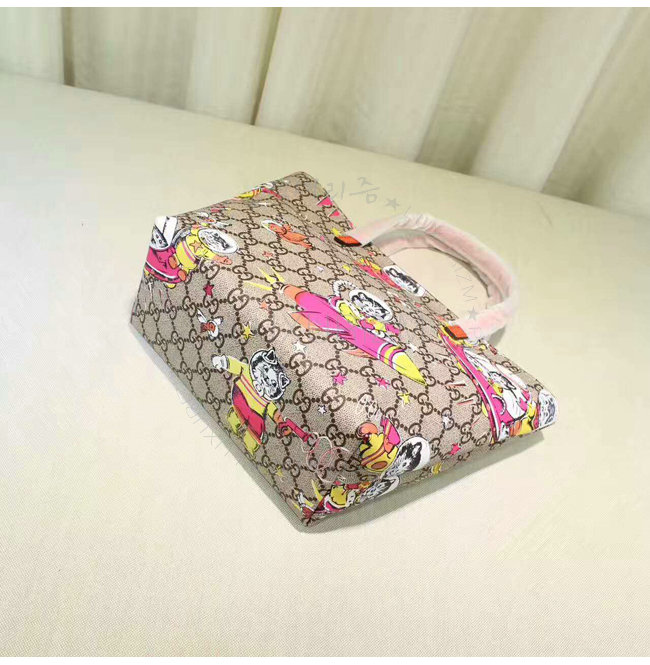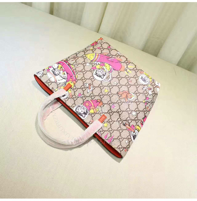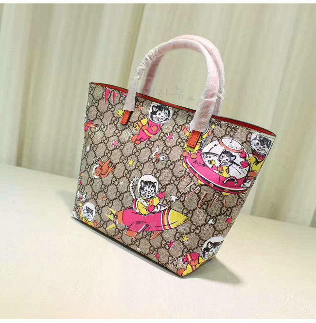 GUCCI-410812 8594 구찌 칠드런 GG수프림 캔버스 고양이 프린트 토트 백 핑크