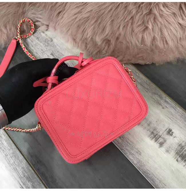[스페셜오더]CHANEL-A93342 샤넬 그레인드 카프스킨 골드 메탈 스몰 코스메틱 케이스 코랄
