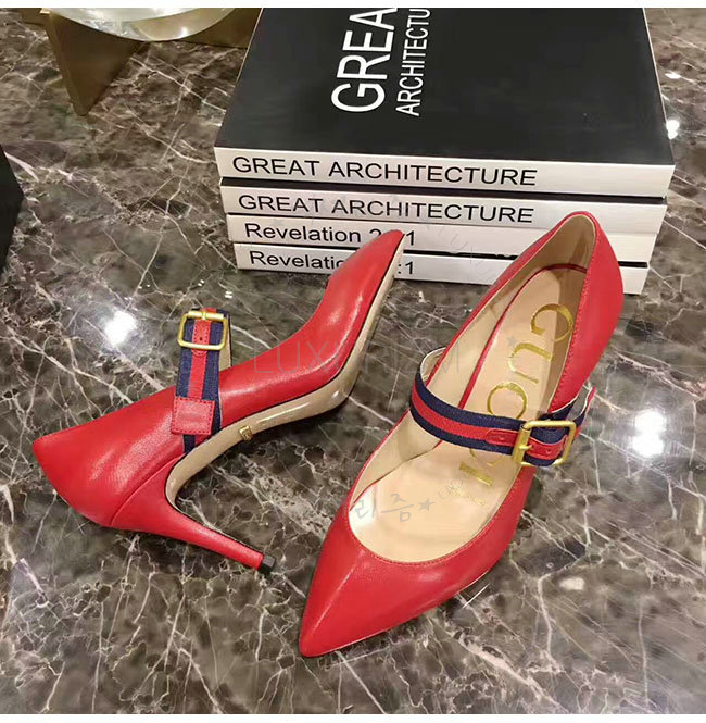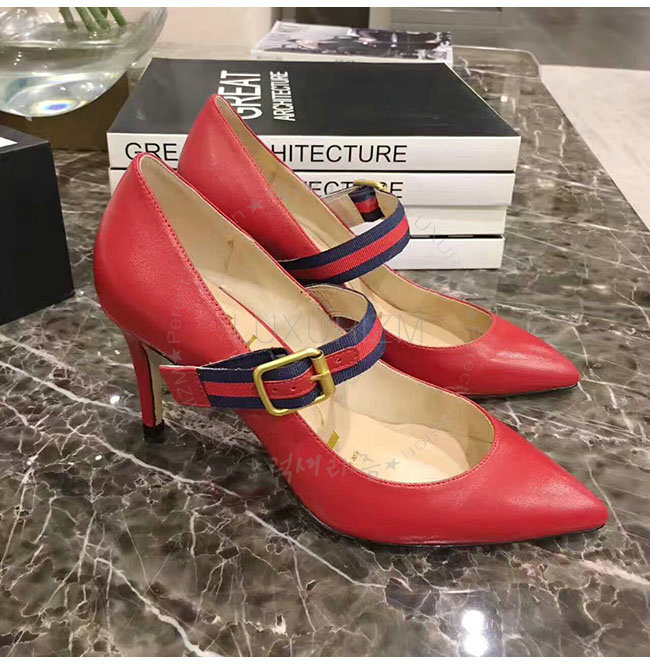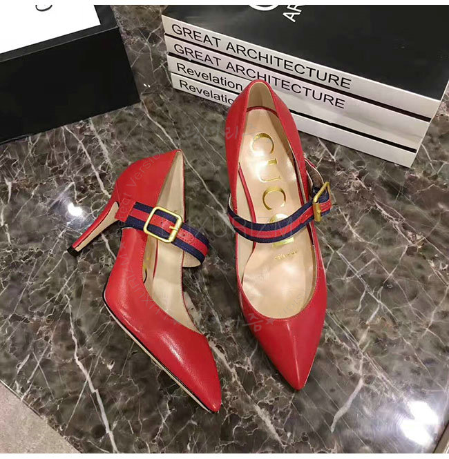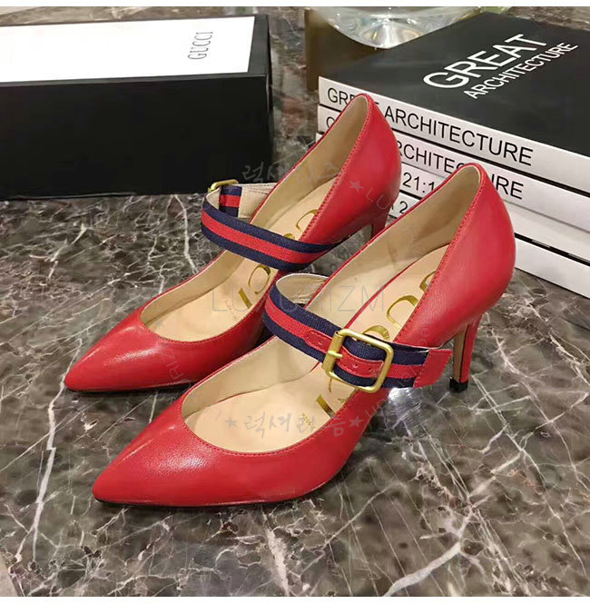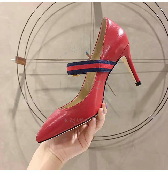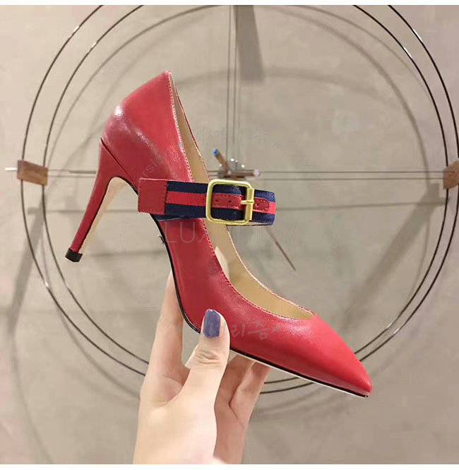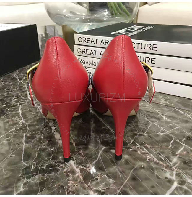 GUCCI-475086 6488 구찌 레드 가죽 미드힐 펌프스 여성용