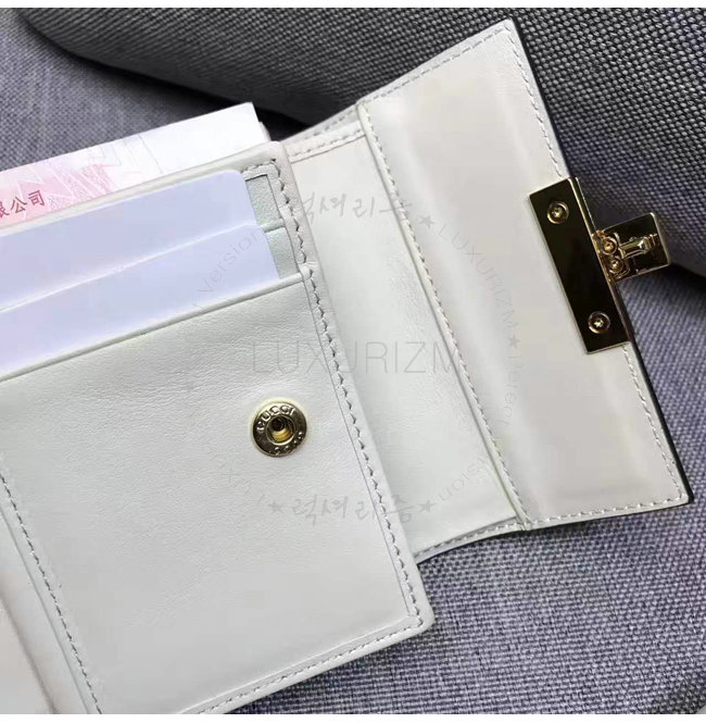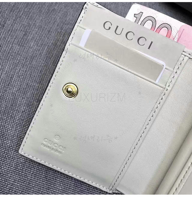 2017 프리폴 컬렉션 화이트 구찌 시그니처 가죽 골드 톤 메탈 장식 4개의 카드슬롯 및