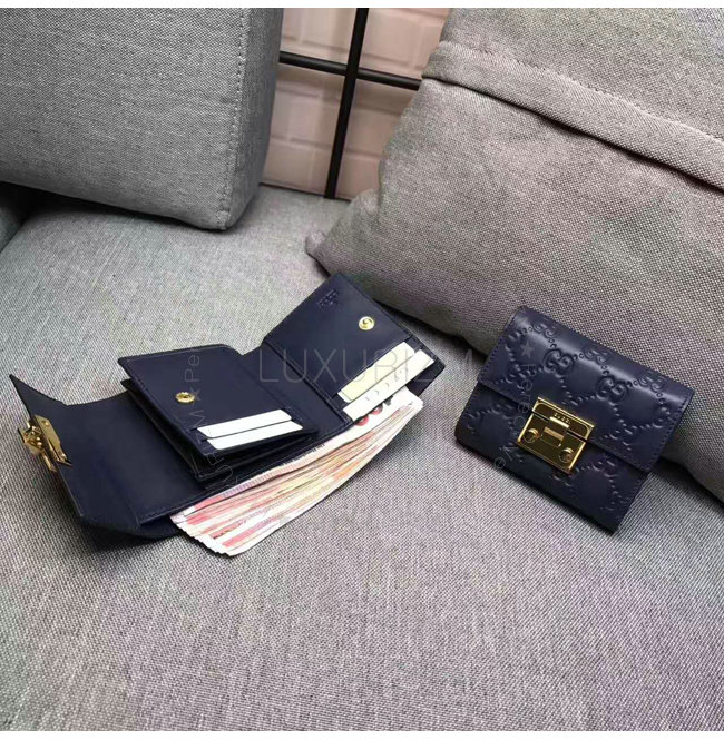 GUCCI-453155 4157 구찌 패드락 시그니처 가죽 지갑 네이비