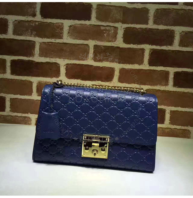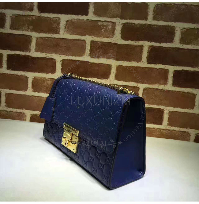 [스페셜오더]GUCCI-409486 4157 구찌 패드락 Gucci 시그니처 가죽 숄더백 블루