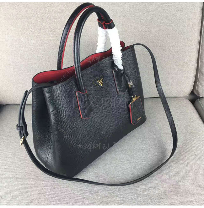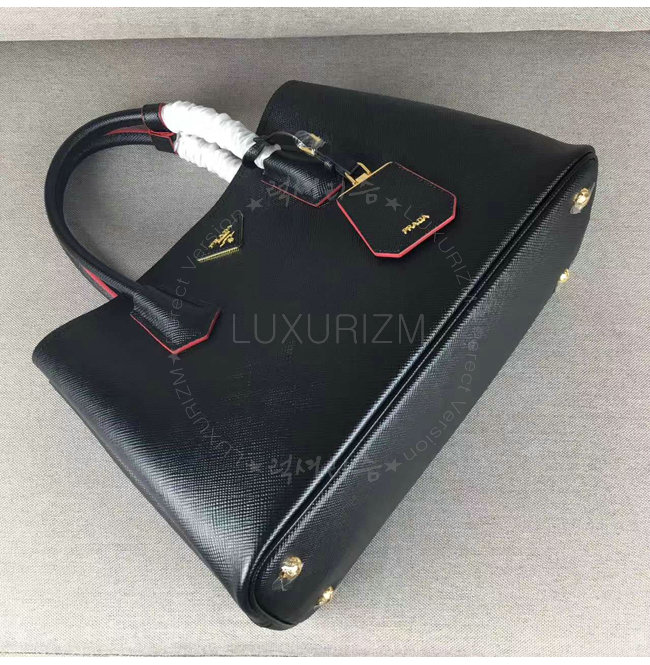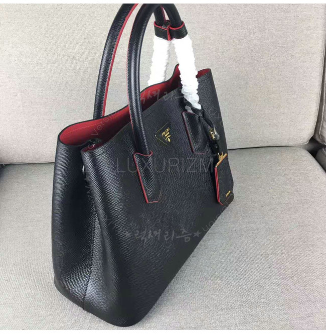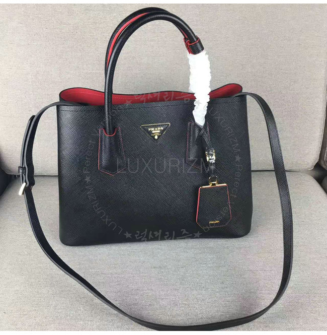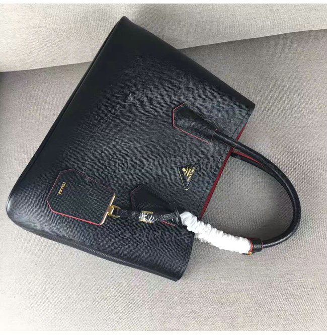 [스페셜오더]PRADA-1BG775 프라다 블랙 사피아노 가죽 두블레 핸들 백
