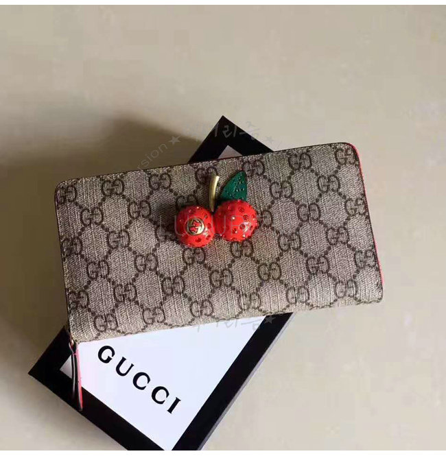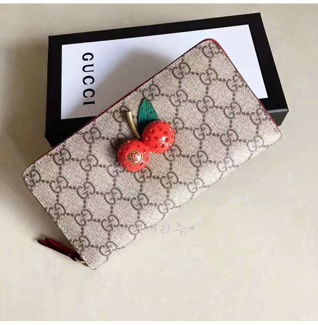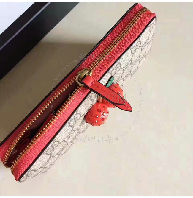 [스페셜오더]GUCCI-476049 8694 구찌 Sparkling Cherries 체리 장식 GG 수프림 집 어라운 월릿