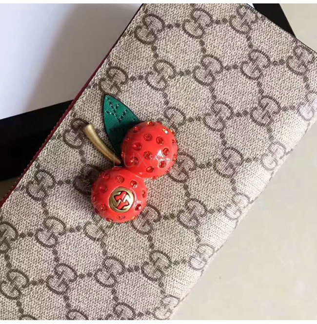 [스페셜오더]GUCCI-476055 8694 구찌 Sparkling Cherries 체리 장식 GG 수프림 콘티네탈 월릿