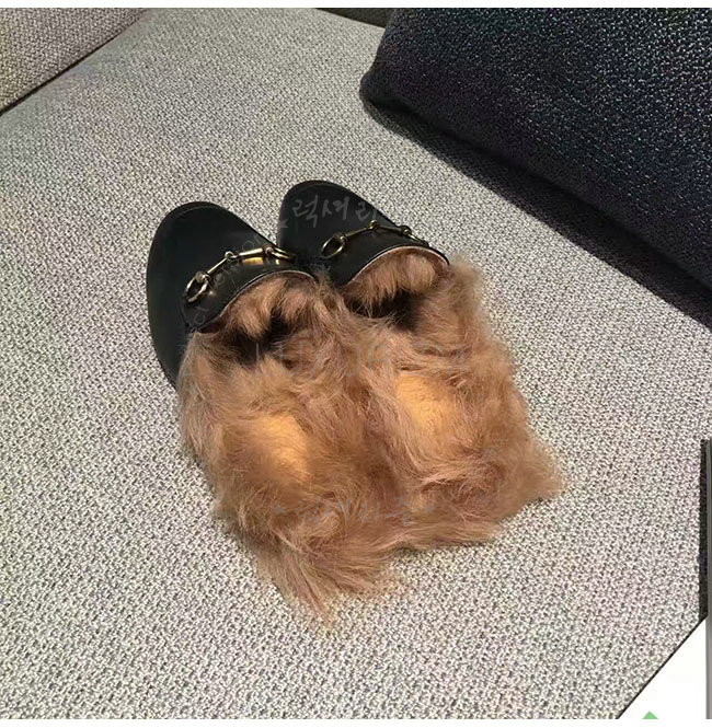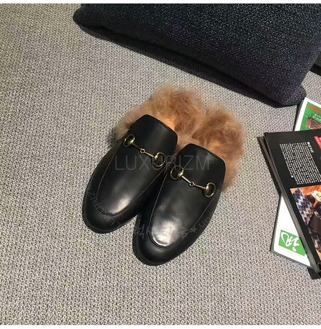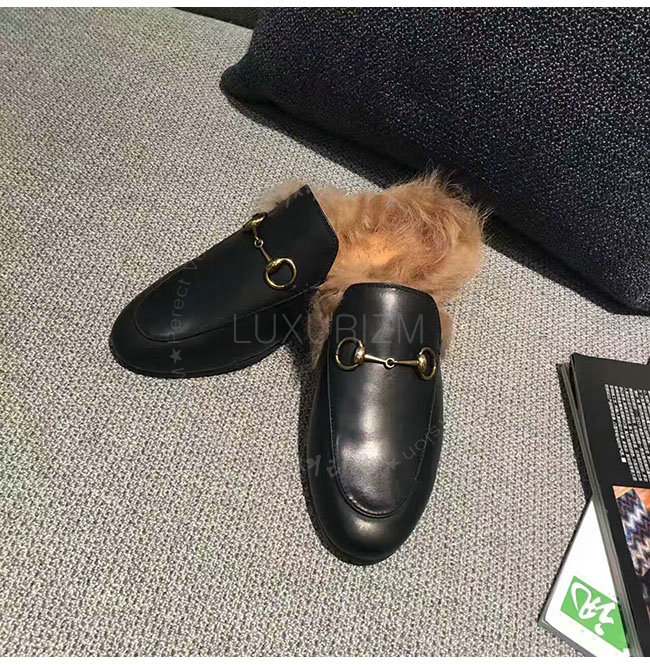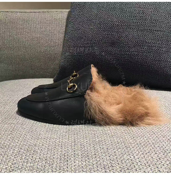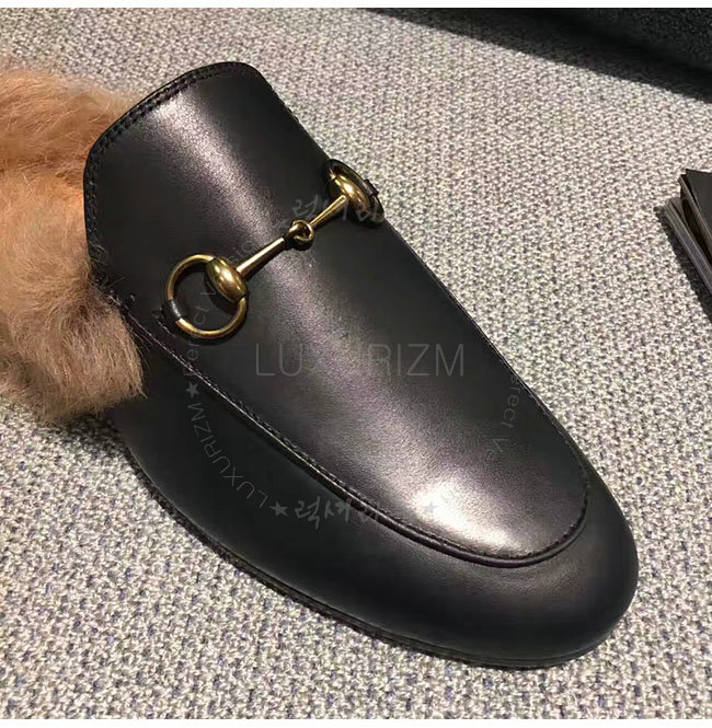 GUCCI-397749 1063 구찌 프린스턴 블랙 가죽 슬리퍼 여성용