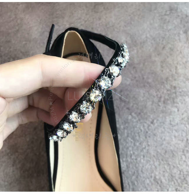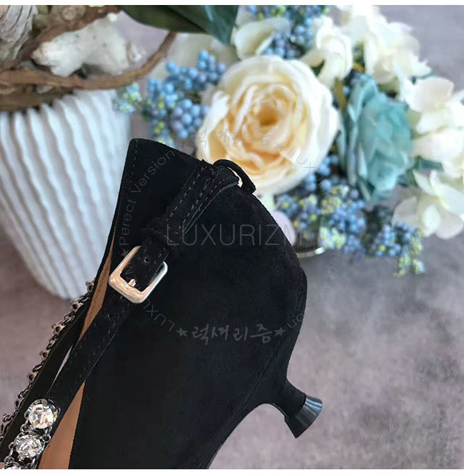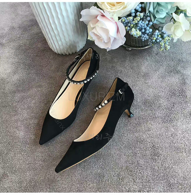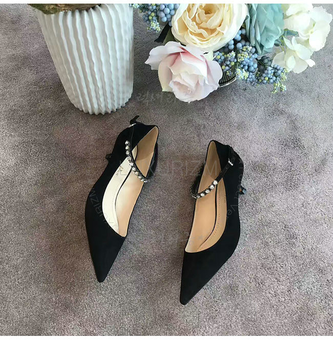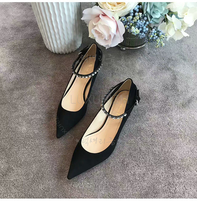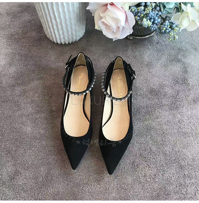 DIOR-KDP307 디올 라인 스톤과 블랙 스웨이드 양가죽 펌프스 여성용