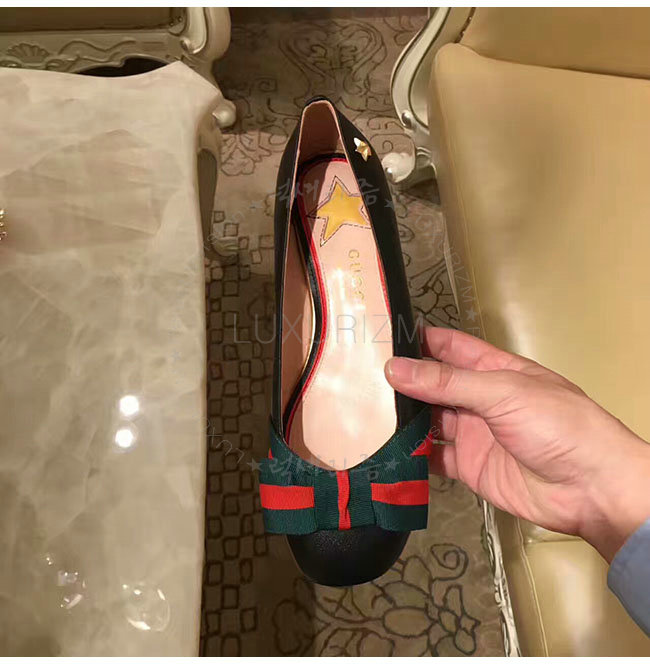 GUCCI-432045 1060 구찌 여성용 블랙 Web 플랫 슈즈