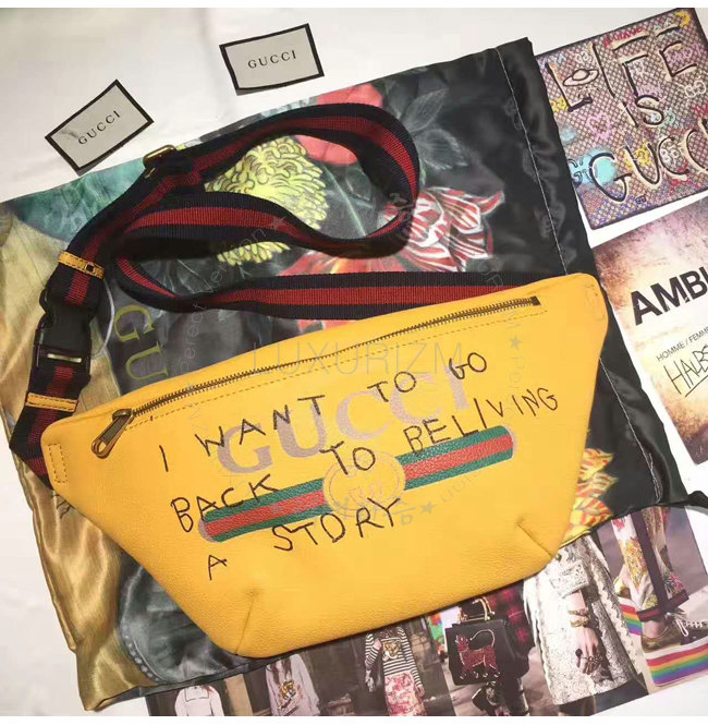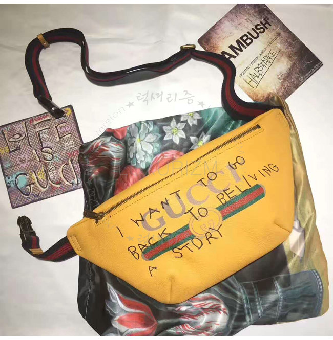 [스페셜오더]GUCCI-493869 8137 구찌 Gucci Coco Capitan 프린트 가죽 벨트 백 옐로우