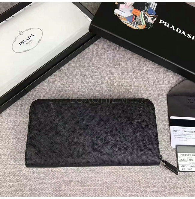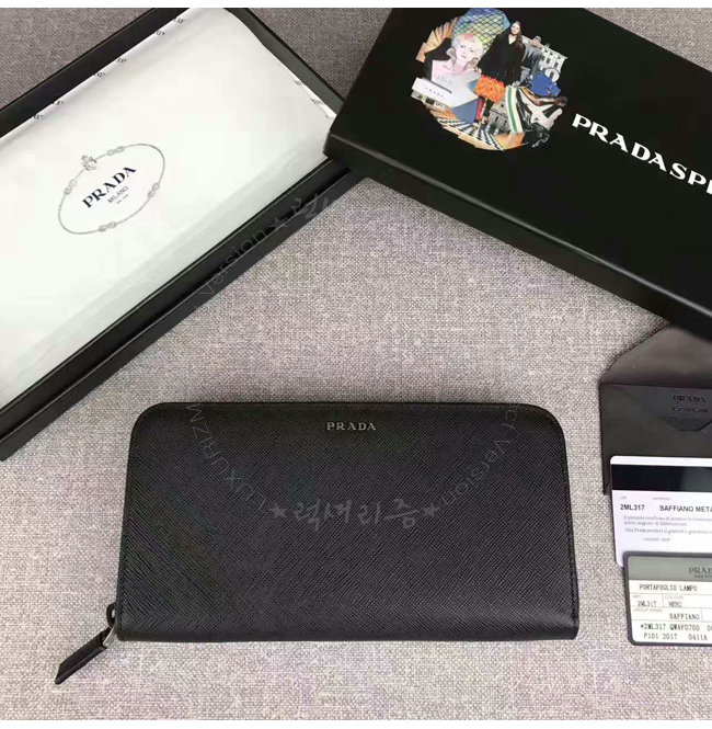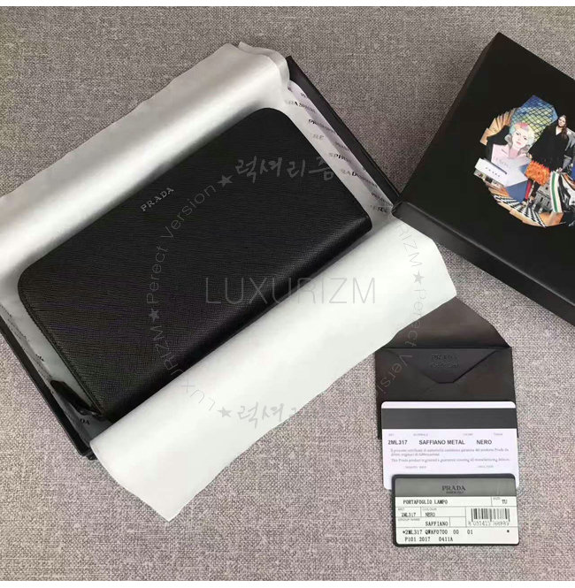 [스페셜오더]PRADA-2ML317 프라다 사피아노 가죽 지퍼 지갑 블랙