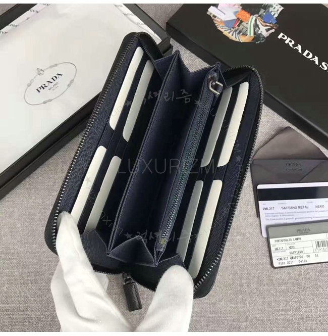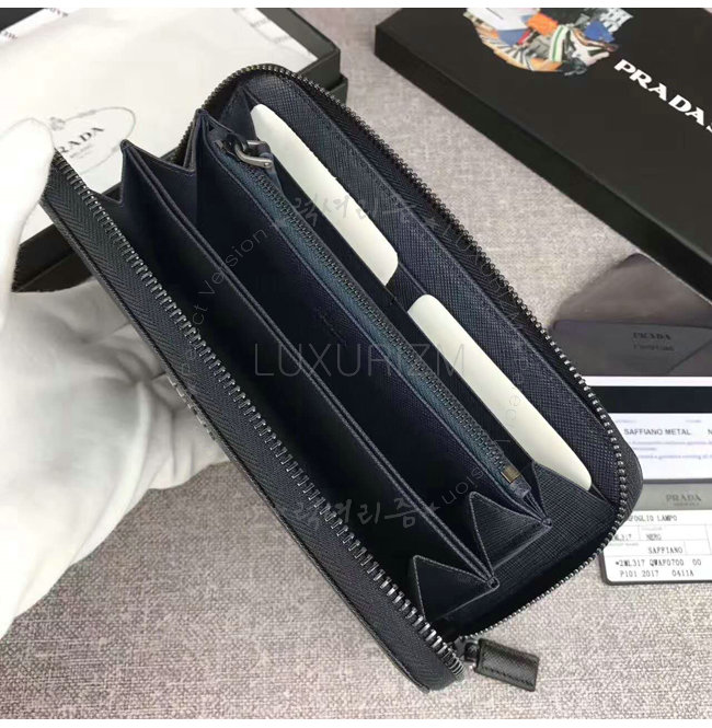 [스페셜오더]PRADA-2ML317 프라다 사피아노 가죽 지퍼 지갑 블랙 네이비 내피
