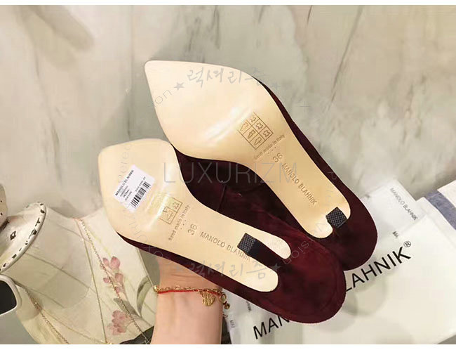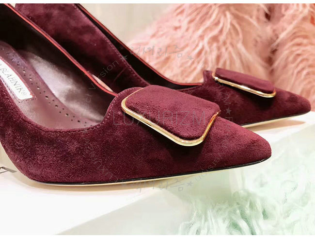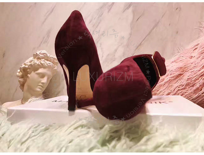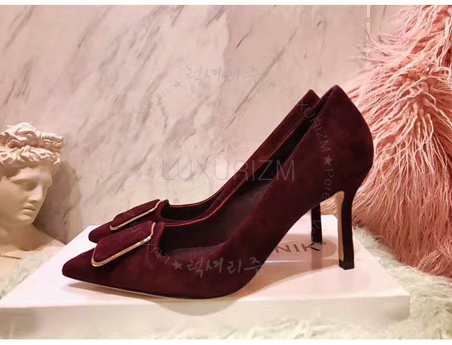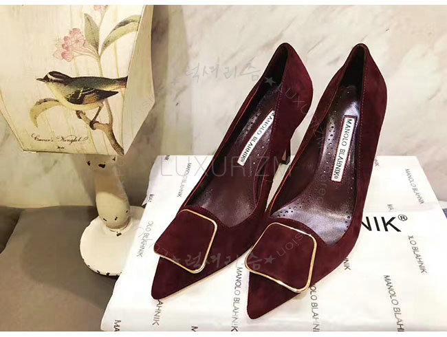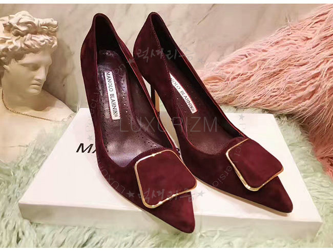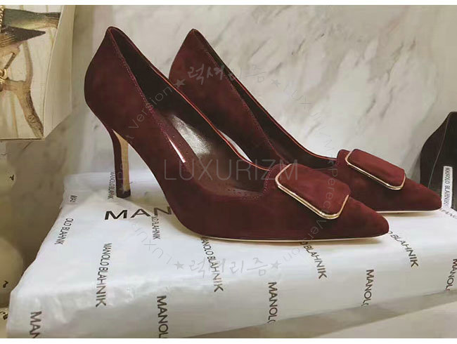 MANOLO BLAHNIK-GONONE 마놀로 블라닉 버건디 스웨이드 버클 디테일 펌프스 여성용