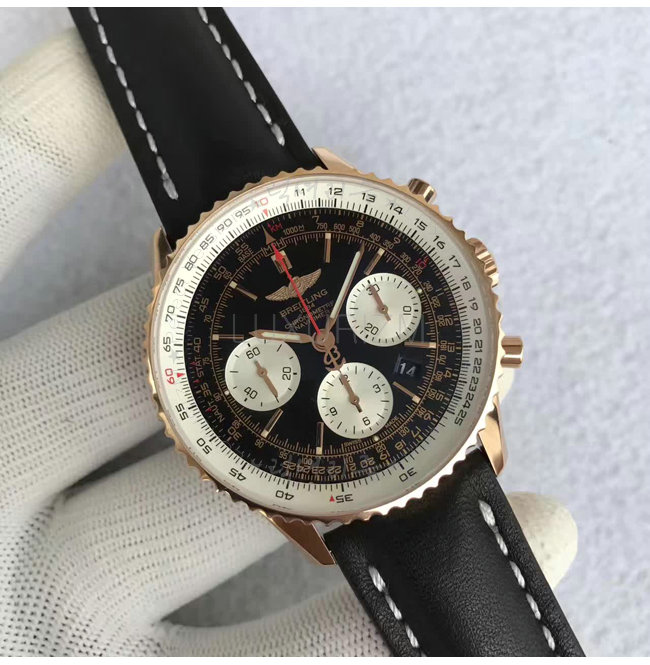 [스페셜오더]BREITLING-브라이틀링 내비타이머 레드 골드 블랙다이얼/블랙가죽스트랩 워치 43mm