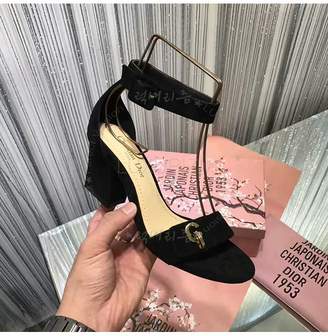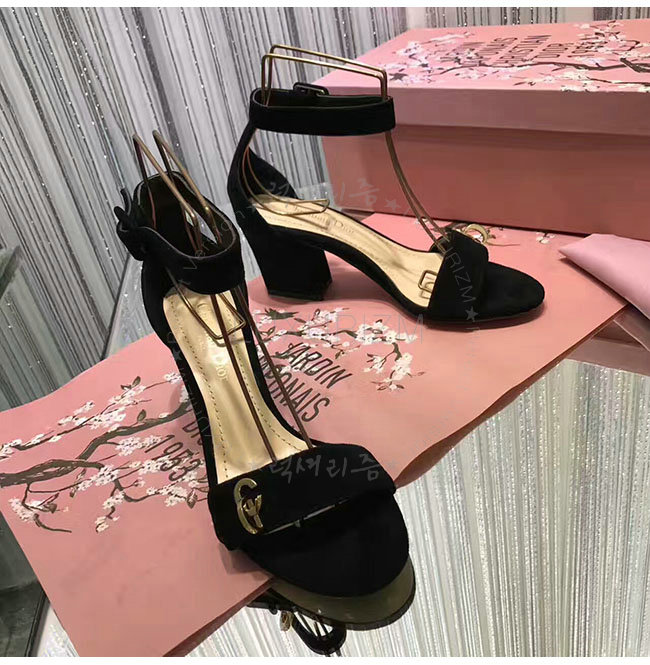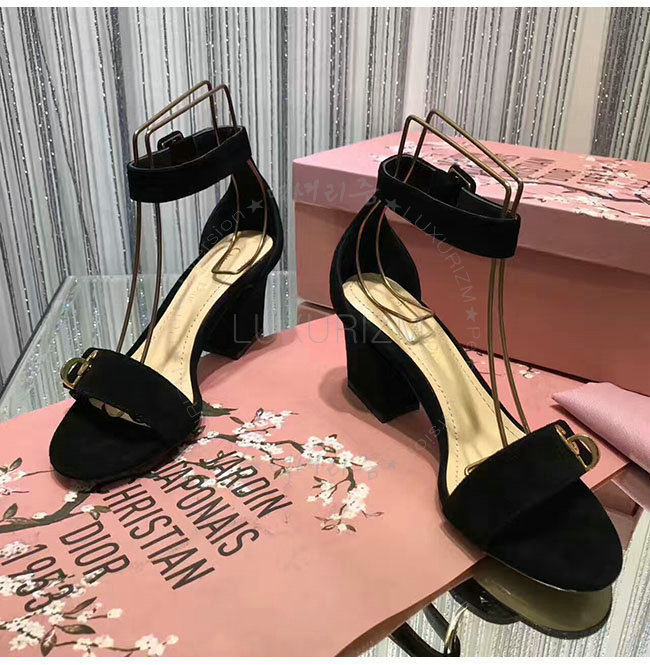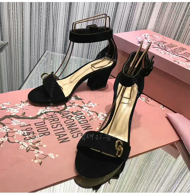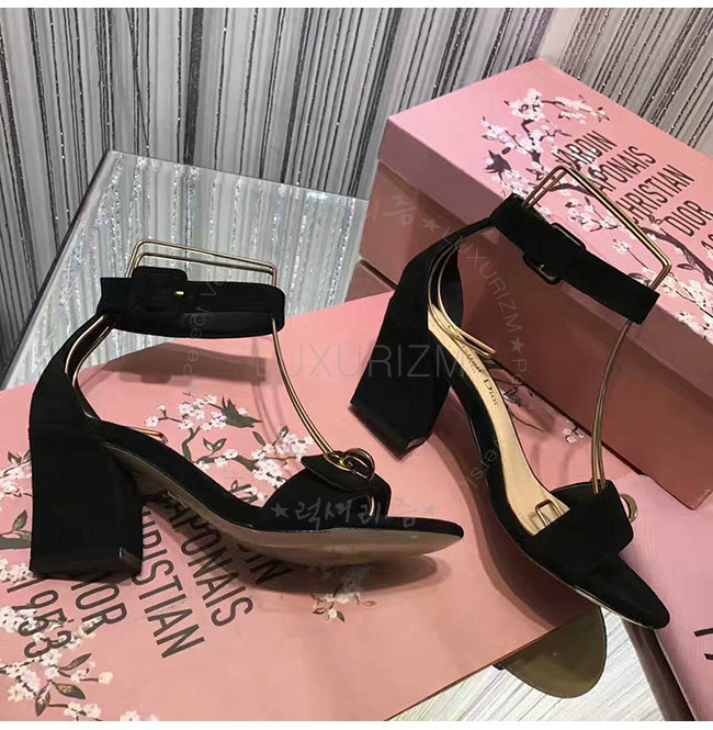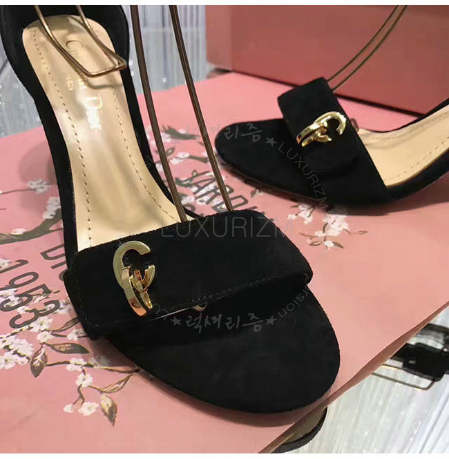 DIOR-KDQ024 디올 골드 CD 이니셜 블랙 스웨이드 양가죽 샌들 여성용