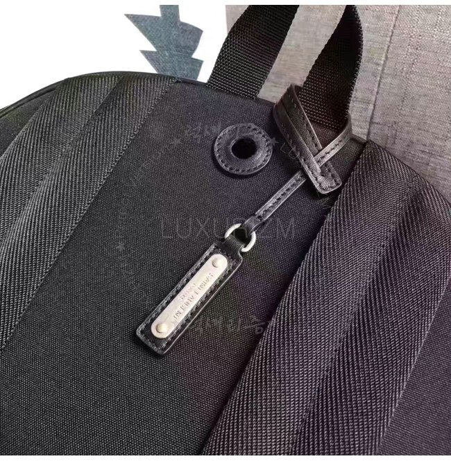 백팩 뒷면 상단의 헤드폰 포트 생 로랑 시그니처가 새겨진 메탈 플레이트 디테일 과 탈부착