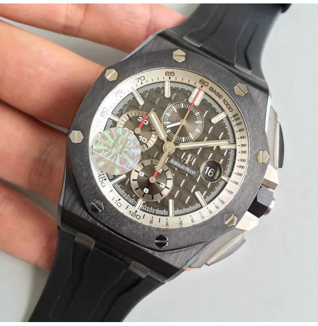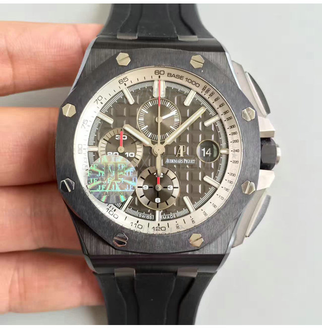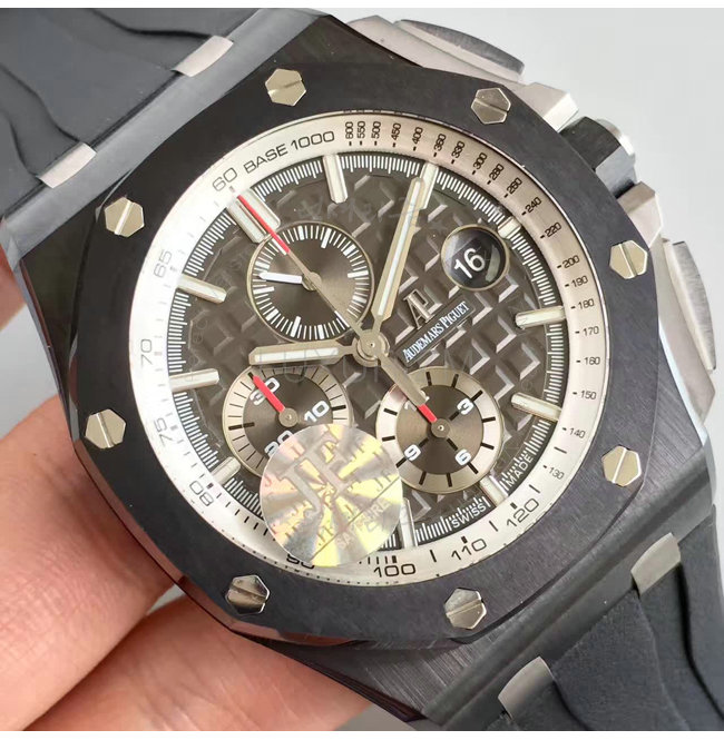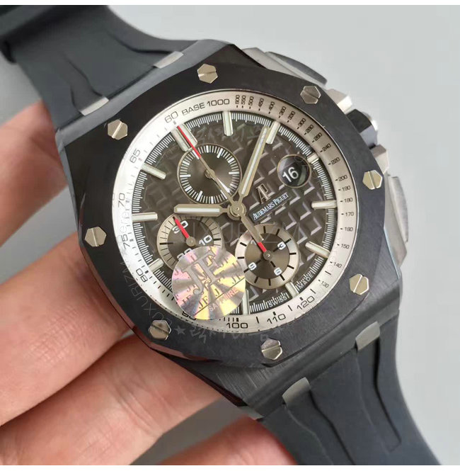 [스페셜오더]Audemars Piguet-오데마 피게 로얄 오크 오프쇼어 크로노그래프 세라믹베젤 실버다이얼 워치 44mm