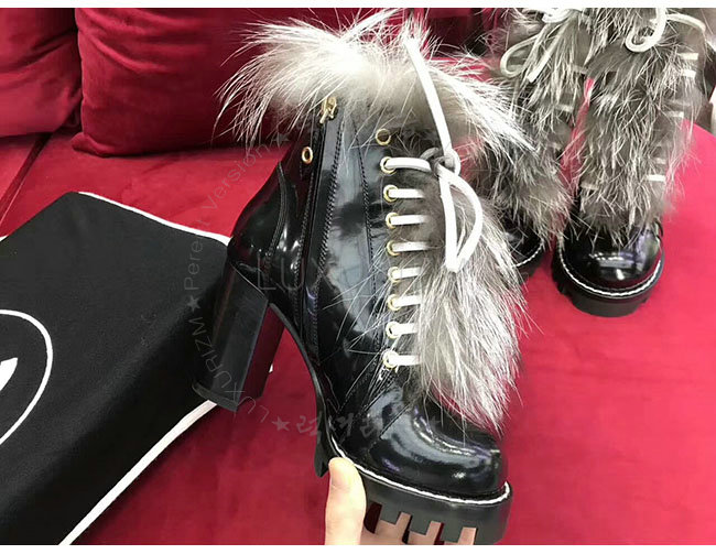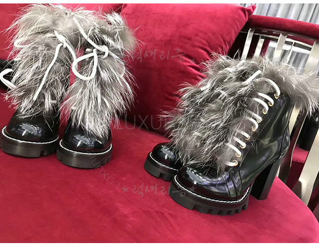 LOUIS VUITTON-1A307H 루이비통 블랙 카프스킨 여우털 스타 트레일 앵클 부츠 여성용
