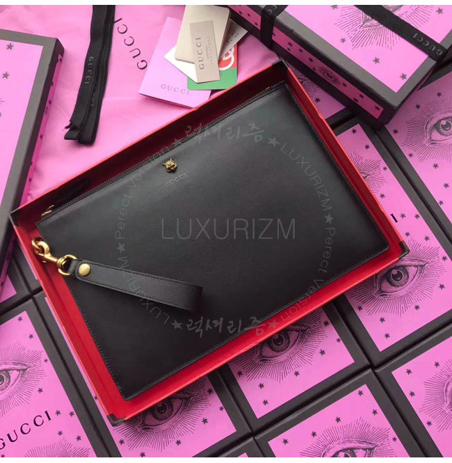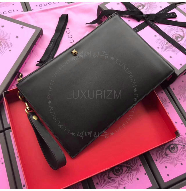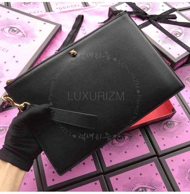 [스페셜오더]GUCCI-428724 1000 구찌 Animalier 블랙 가죽 파우치