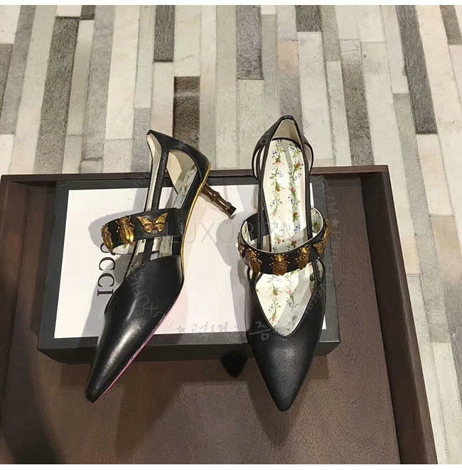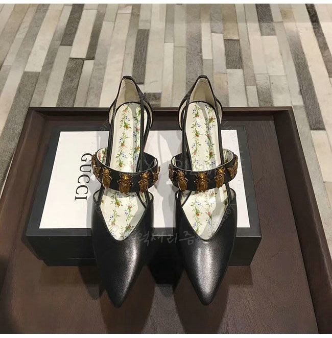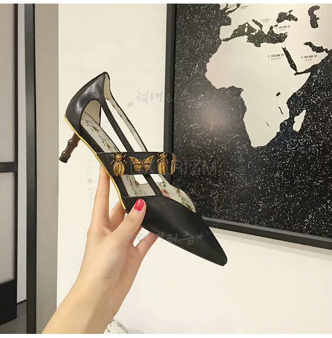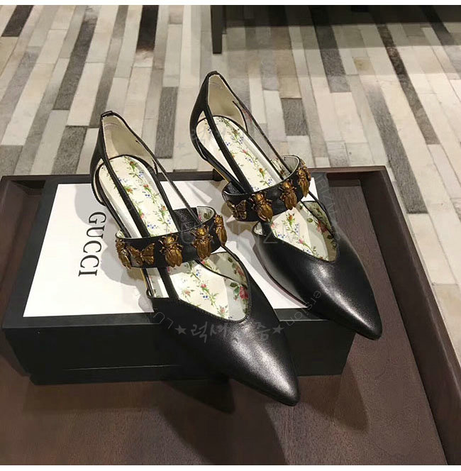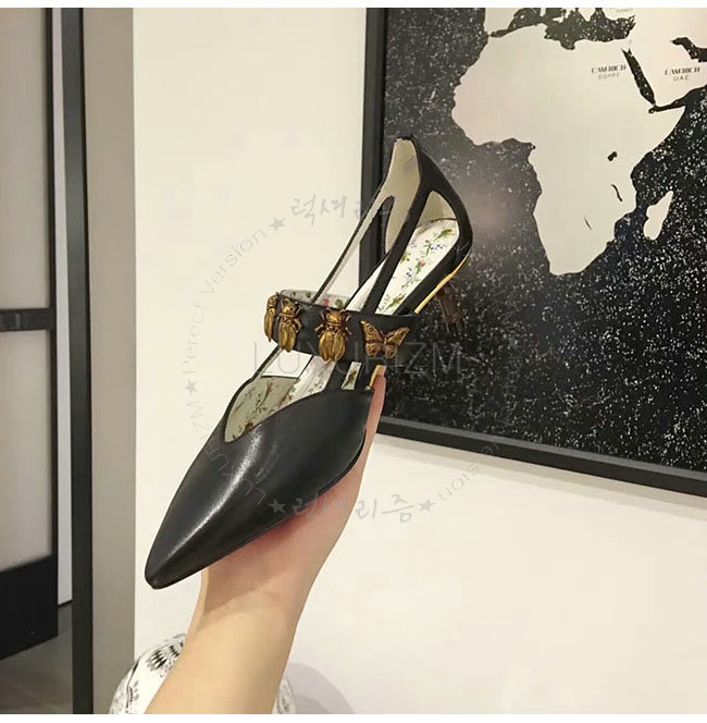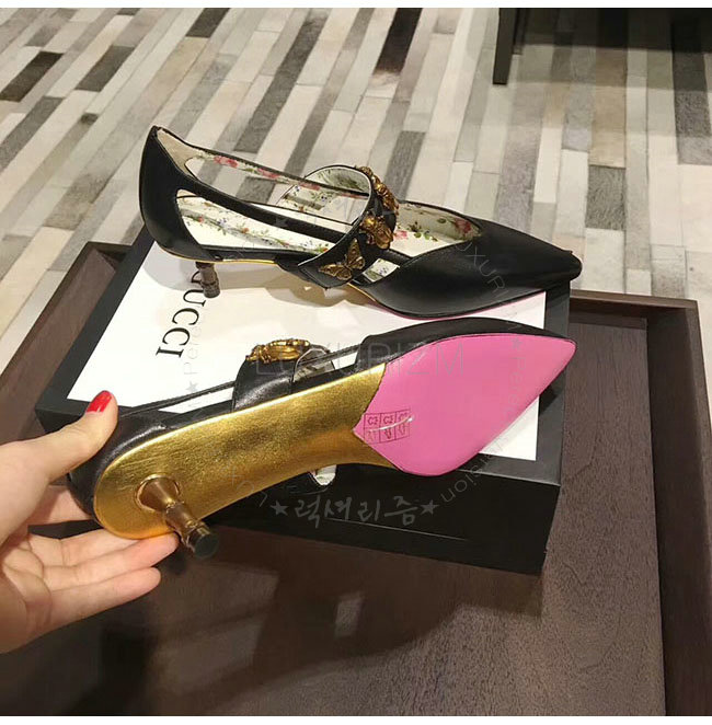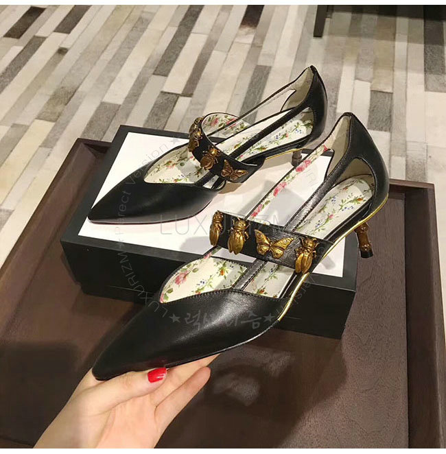 GUCCI-493933 1000 구찌 곤충 스터드 블랙 가죽 펌프스 여성용