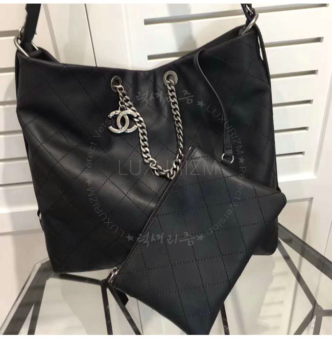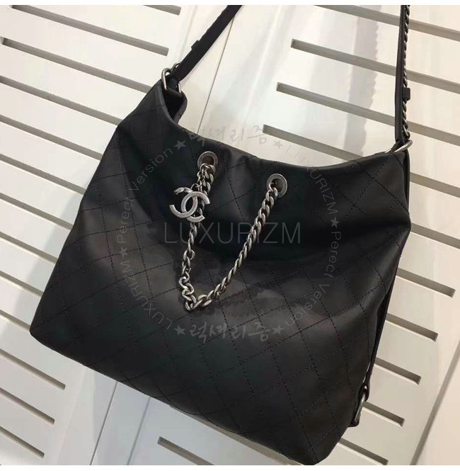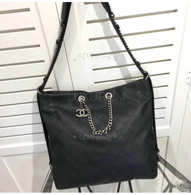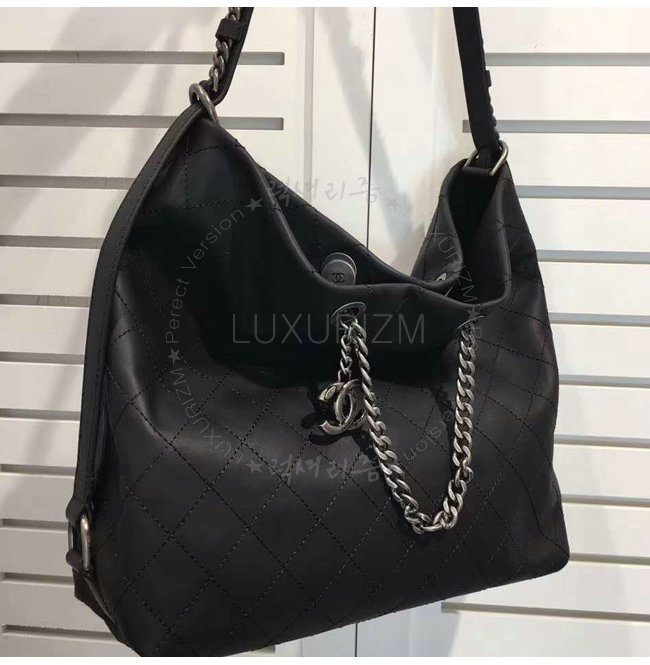 [스페셜오더]CHANEL-A98698 샤넬 카프스킨 루테늄 메탈 호보 핸드백 블랙