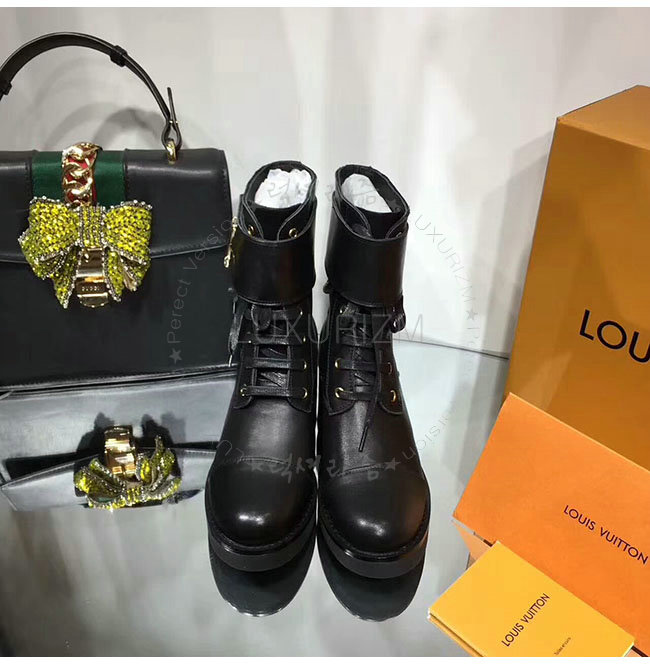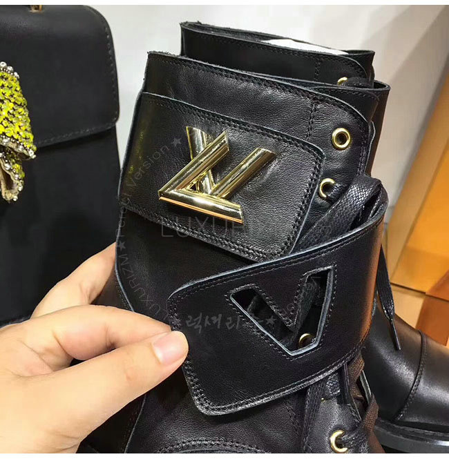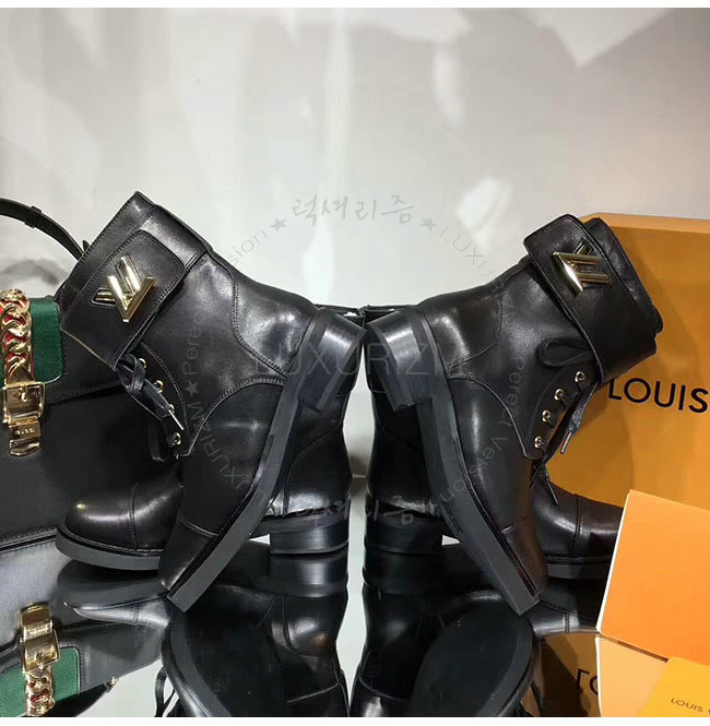 LOUIS VUITTON-1A1IY7 루이비통 블랙 가죽 원더랜드 플랫 레인저 여성용