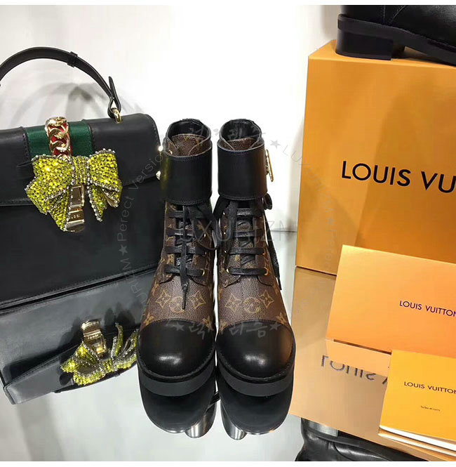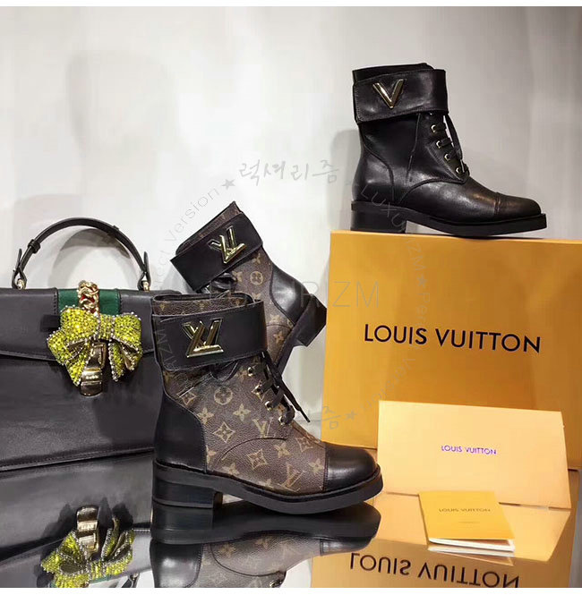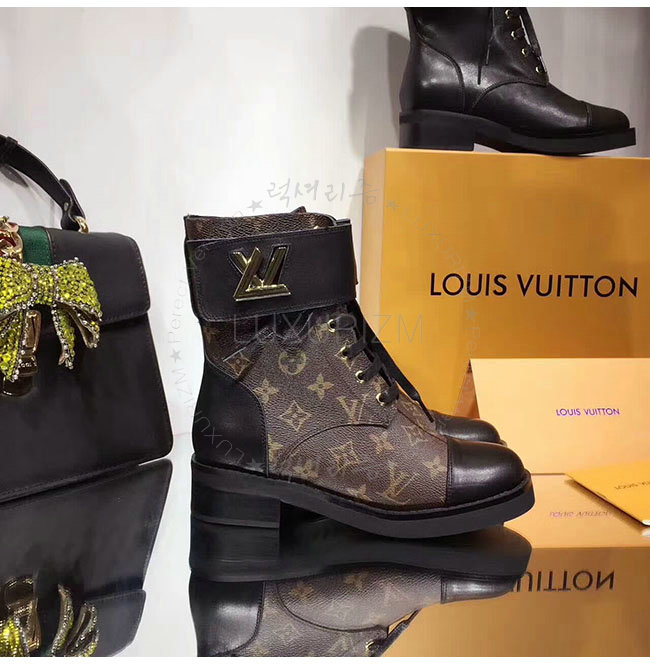 LOUIS VUITTON-1A1IY7 루이비통 블랙 가죽 원더랜드 플랫 레인저 여성용