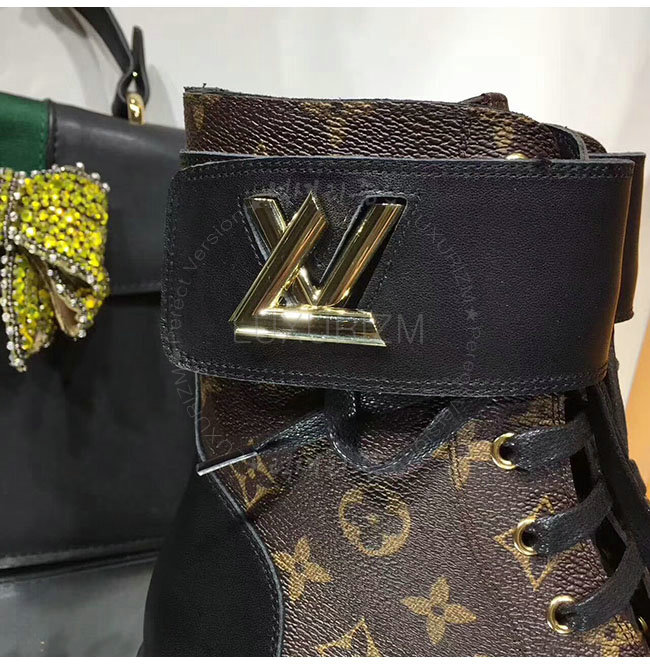 LOUIS VUITTON-1A2XKS 루이비통 악어무늬 블랙 가죽 원더랜드 플랫 레인저 여성용