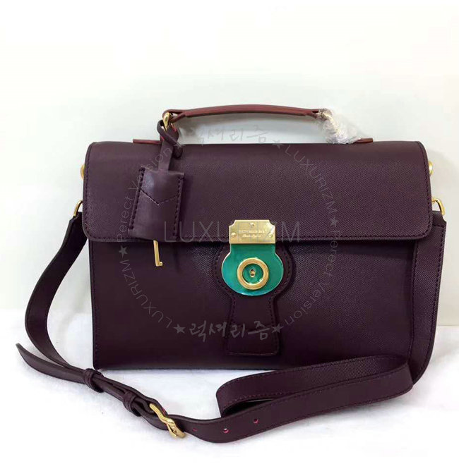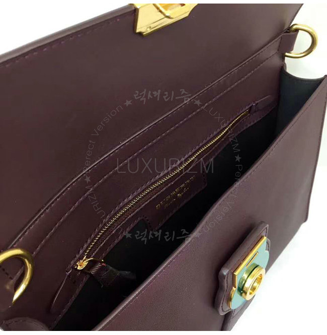 푸시 락 잠금장치 상단 가죽손잡이 수작업으로 마감칠된 테두리 금속하드웨어 버버리 엠보싱 로고.