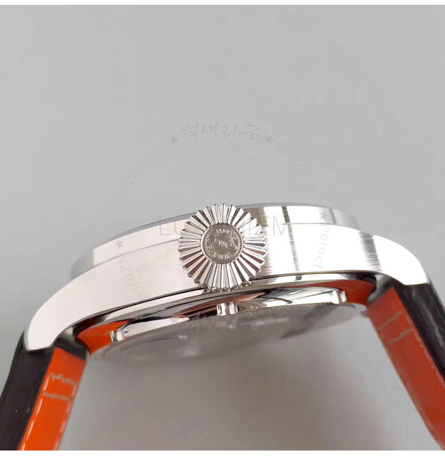 -스테인레스 스틸 케이스/스페셜 인그레이빙 백케이스/브라운 가죽스트랩 핀버클.