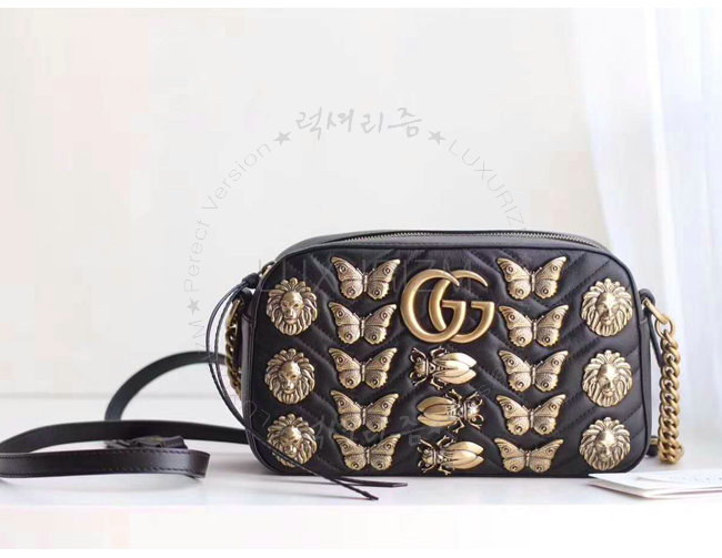[스페셜오더]GUCCI-447632 1000 구찌 GG Marmont 애니멀 스터드 숄더 백 블랙