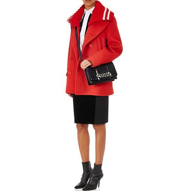 Pre-Fall 2017 컬렉션의 주요 세부 사항 인 전면 플랩을 따라 세련된