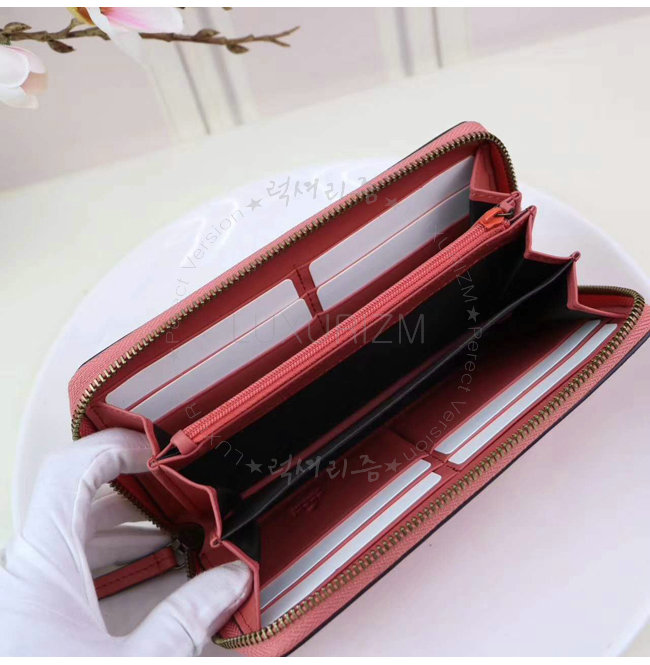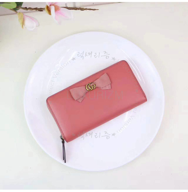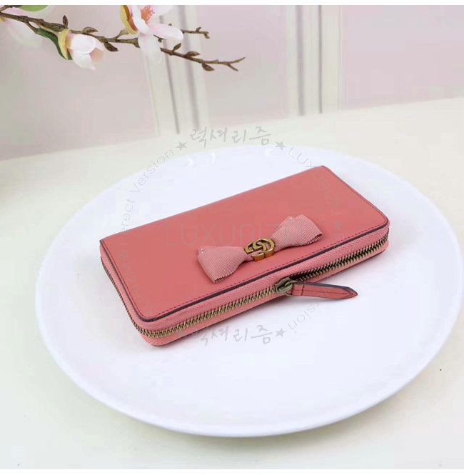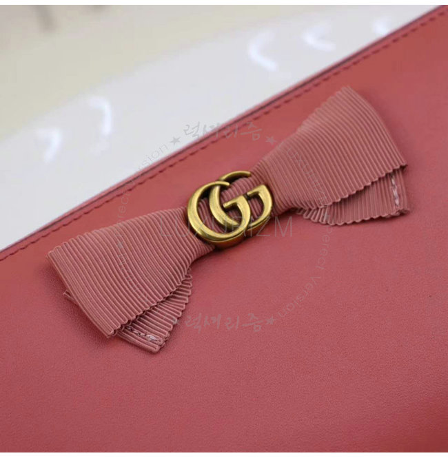 GUCCI-435819 5776 구찌 GG 리본 핑크 가죽 집 어라운 월릿