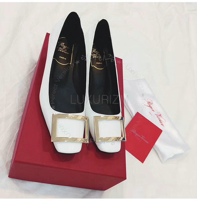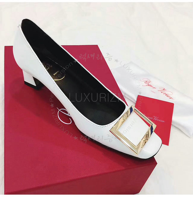 ROGER VIVIER-40315850 로저비비에 트럼펫 화이트 페이턴트 가죽 펌프스 여성용