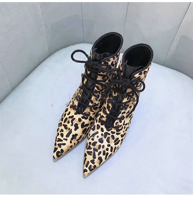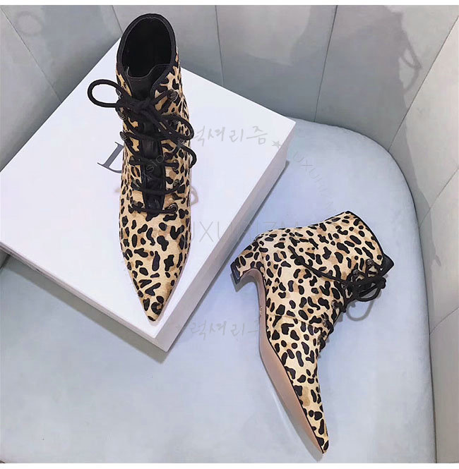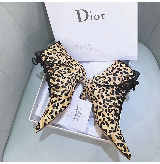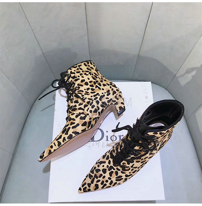 DIOR-KCI405 디올 레오파드 컬러 포니 스타일 송아지 가죽 레이스업 앵클 부츠 여성용