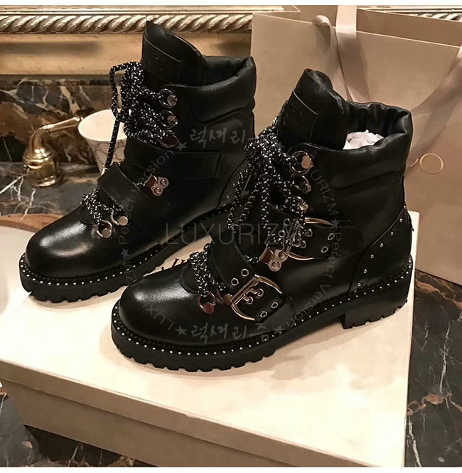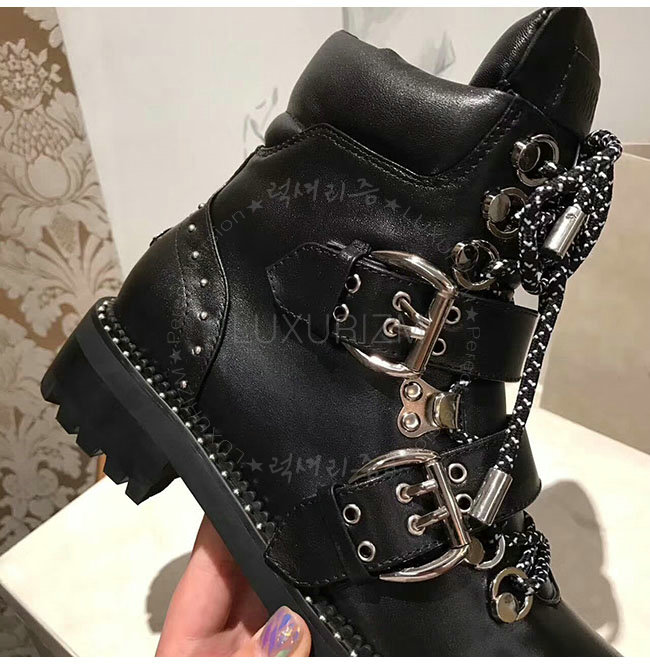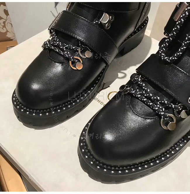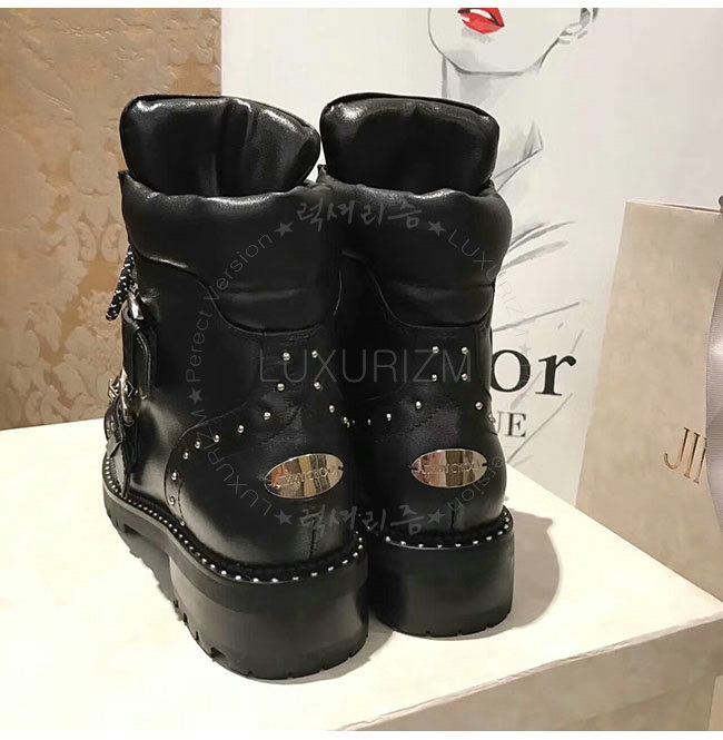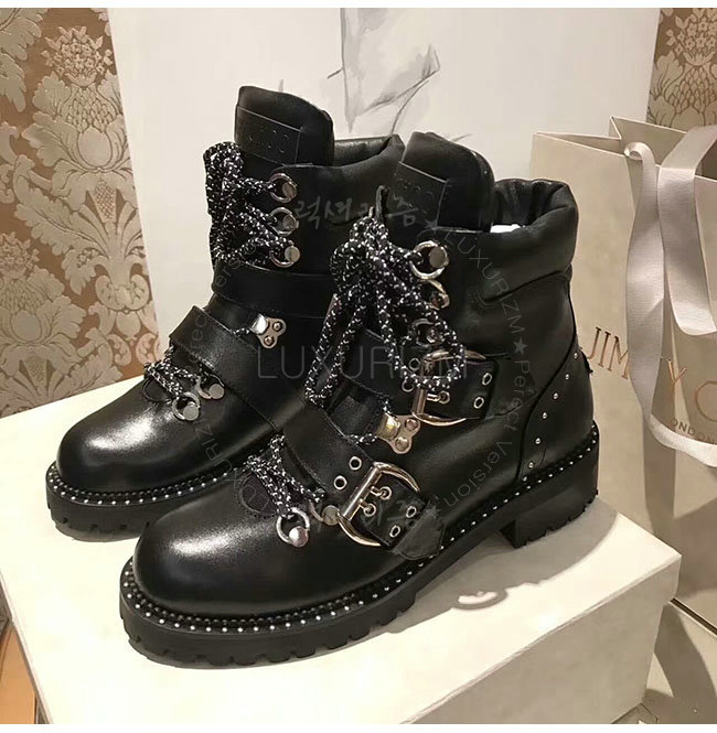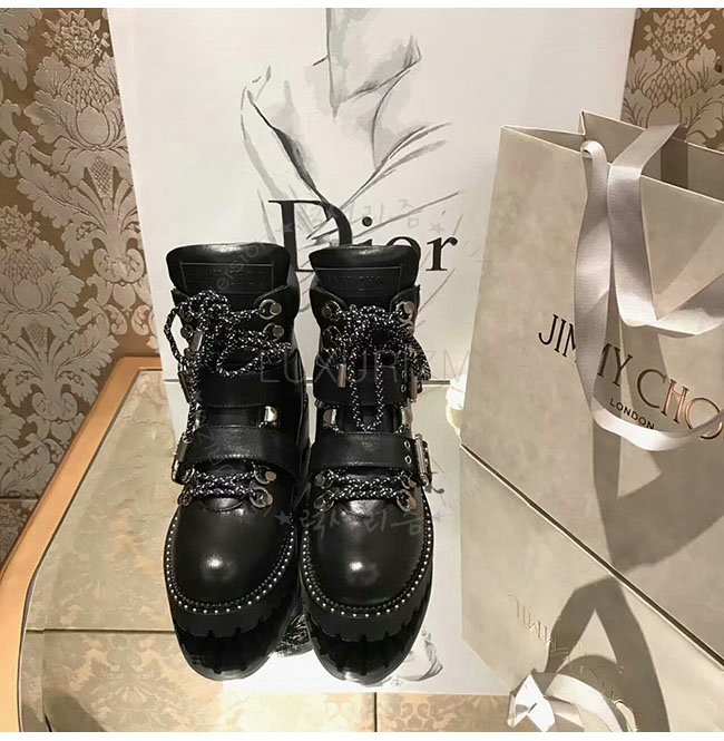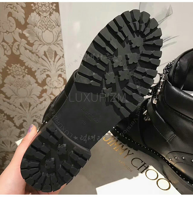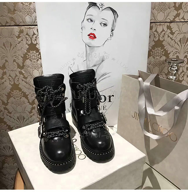 JIMMY CHOO-BREEZE 지미추 블랙 스무스 가죽 바이커 부츠 여성용