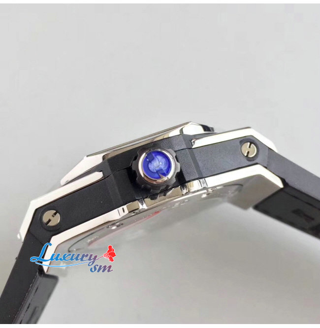 -자동 셀프 와인딩 무브먼트/기하학적인 블랙 다이얼/러버*가죽 스트랩.