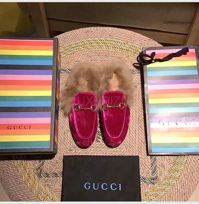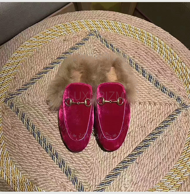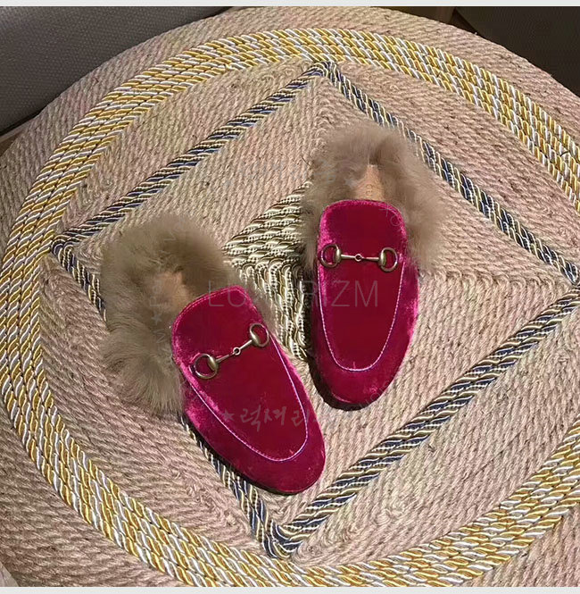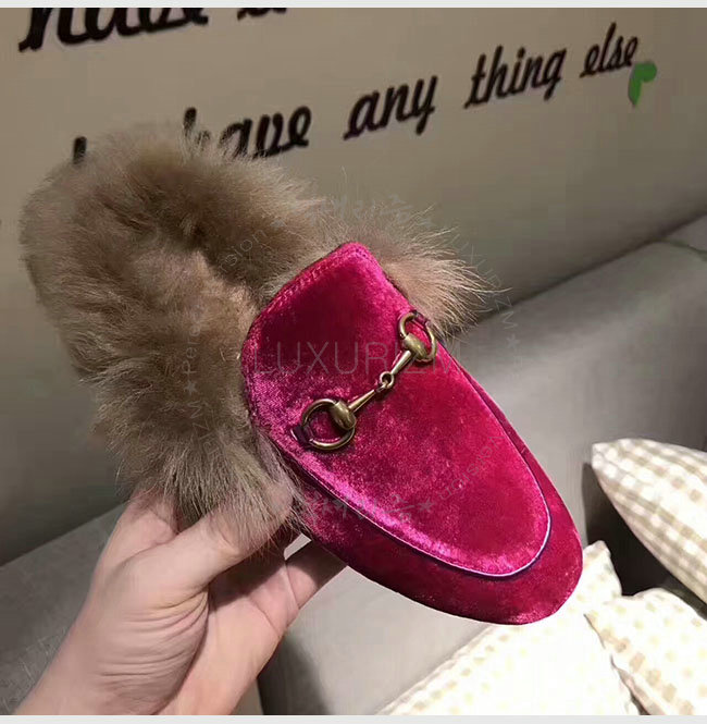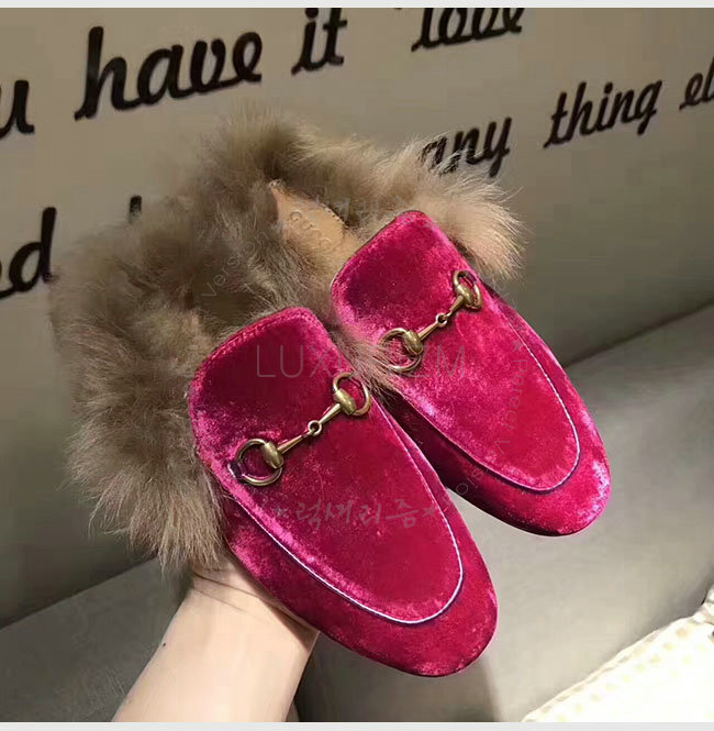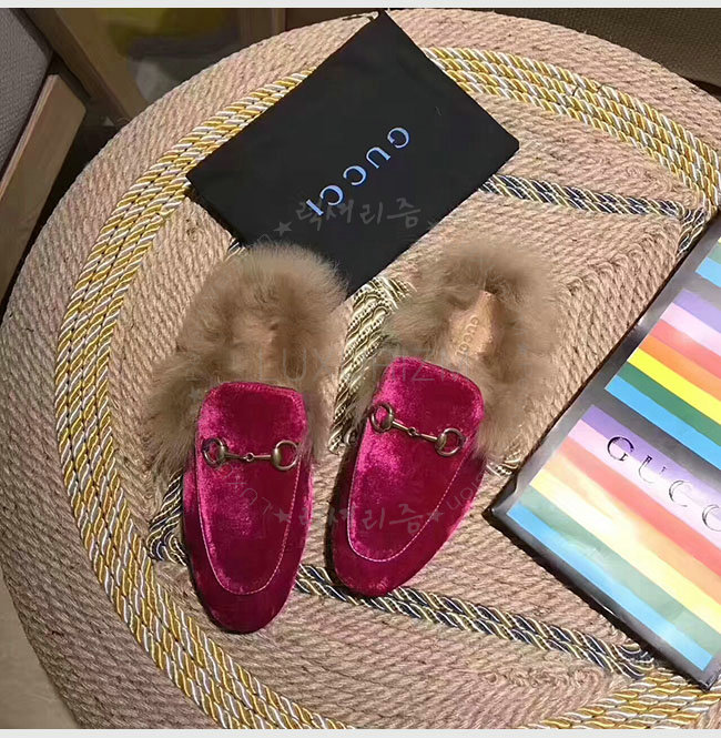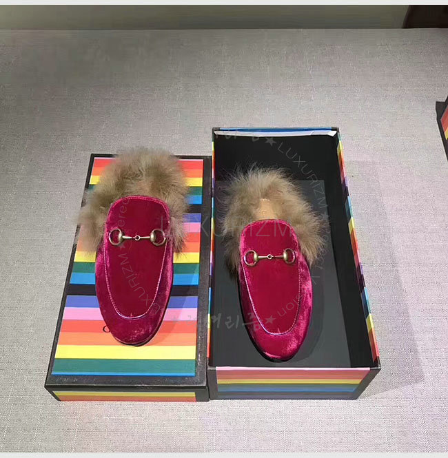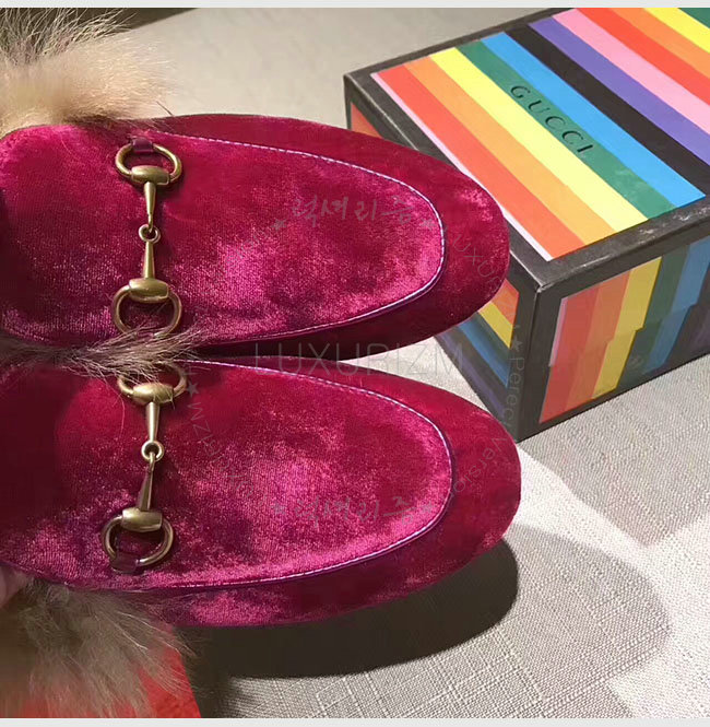 GUCCI-448657 6452 구찌 프린스타운 레드 벨벳 슬리퍼 여성용