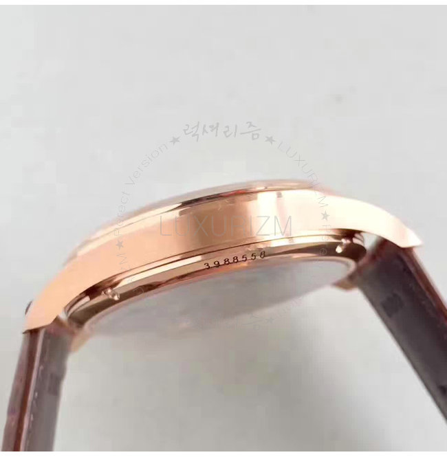 -레드골드(IPG)특수이온 도금 케이스/사파이어 글래스 투명 케이스 백/가죽스트랩..