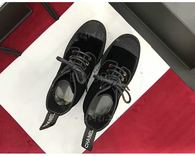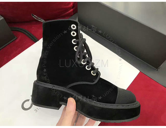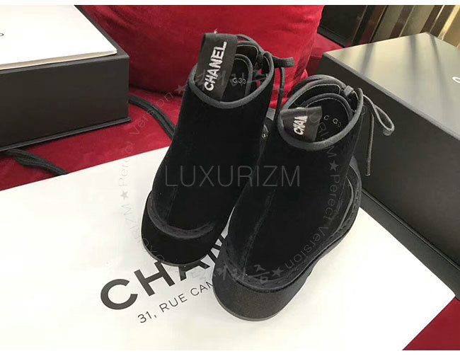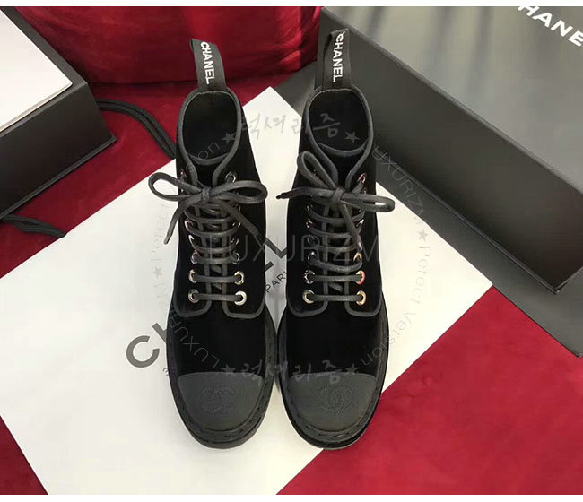#샤넬연예인신발추천 샤넬슈즈쇼핑몰 홍콩명품쇼핑몰 럭셔리즘 CHANEL-G33168 샤넬 블랙 벨벳 쇼트 부츠 여성용