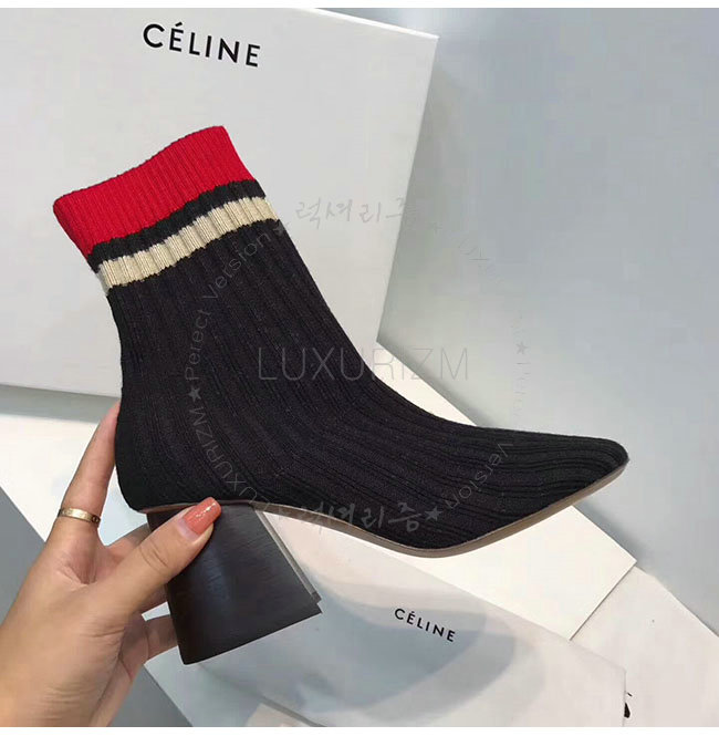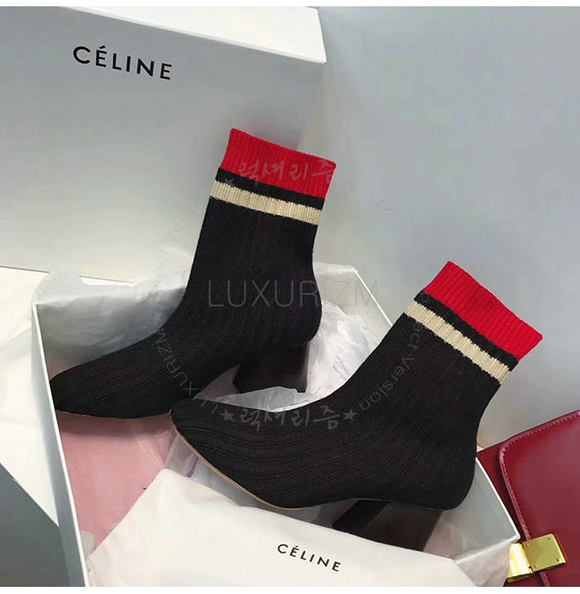 CELINE-319182 셀린느 블랙 니트 삭스 앵클 부츠 여성용