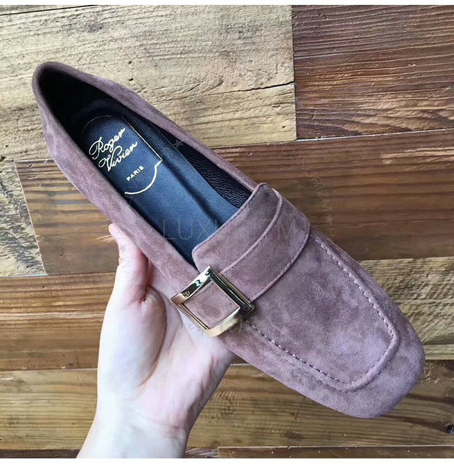 ROGER VIVIER-44918400 로저비비에 그레이 스웨이드 메탈 버클 로퍼 여성용