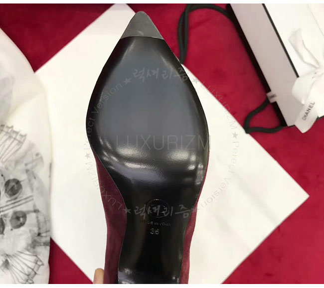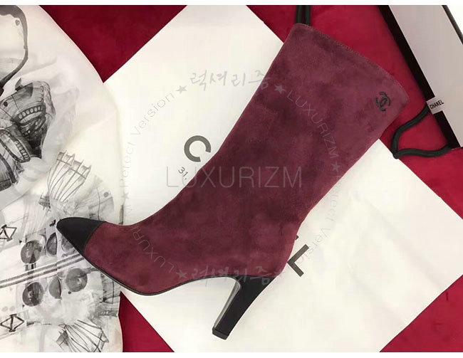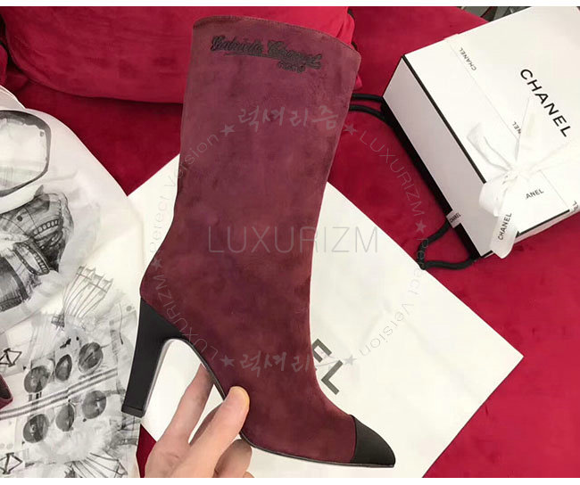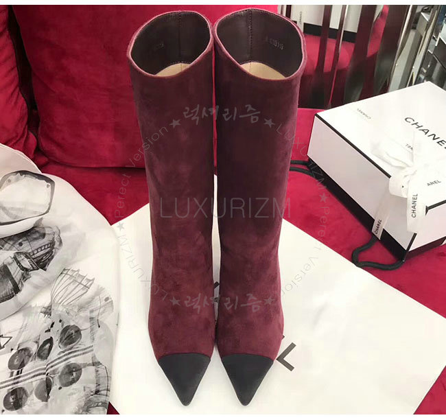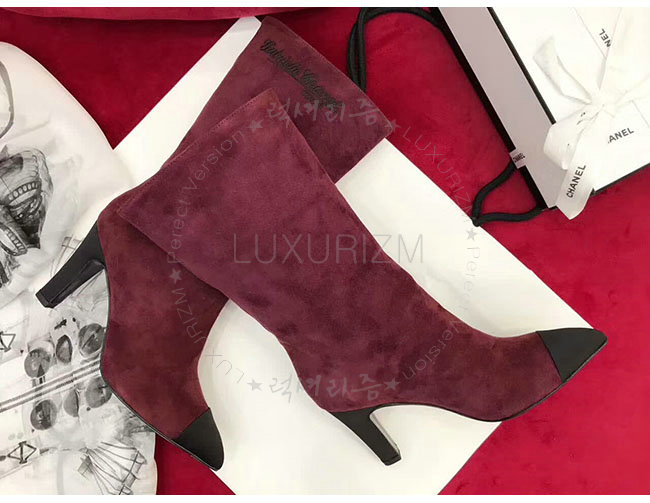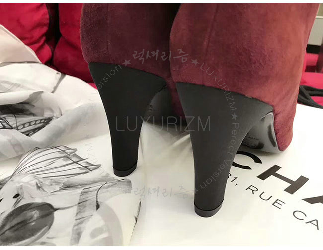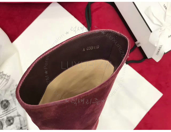 CHANEL-G33119 샤넬 와인 레드 스웨이드 카프스킨 하이 부츠