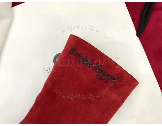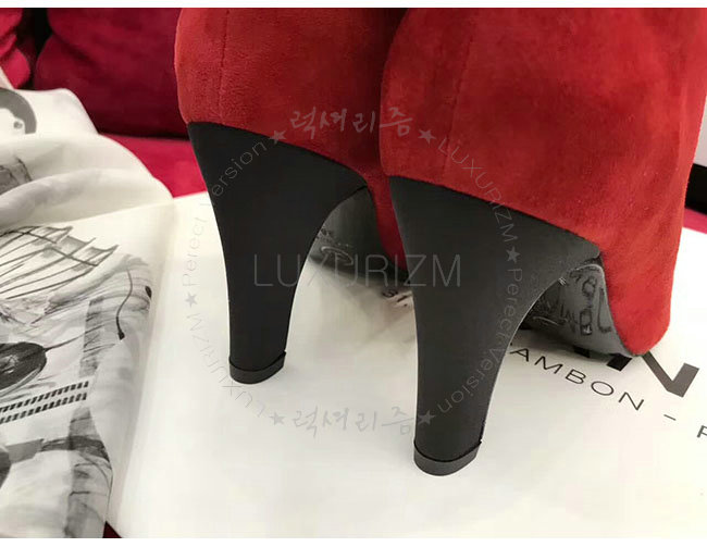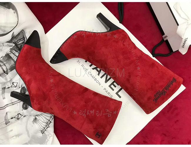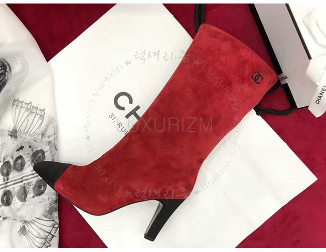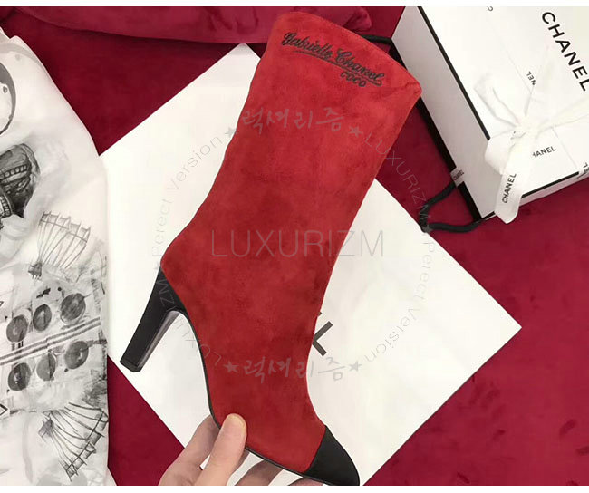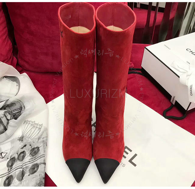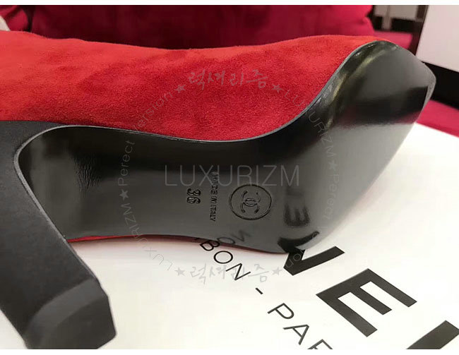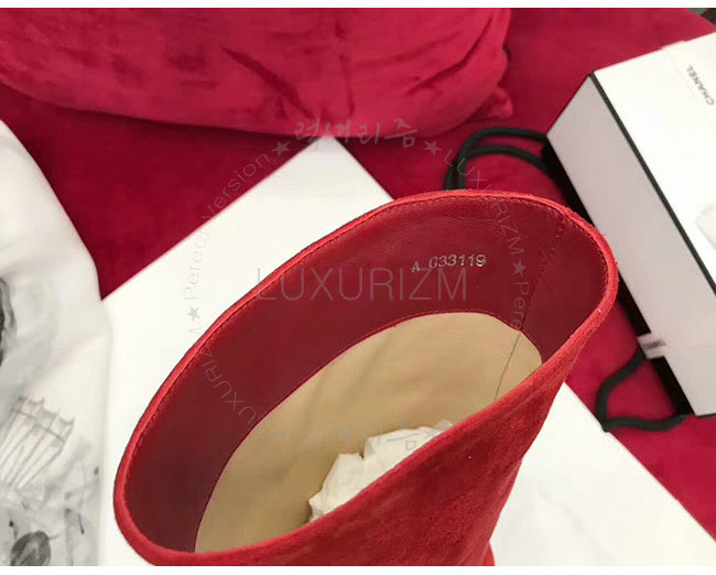 CHANEL-G33119 샤넬 레드 스웨이드 카프스킨 하이 부츠 여성용