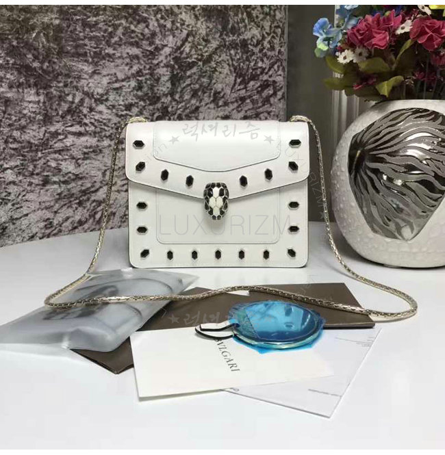 [스페셜오더]BVLGARI-283386 불가리 세르펜티 화이트 아게이트 컬러 젬 스터드장식 플랩 커버 스몰 체인 백