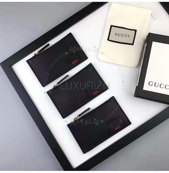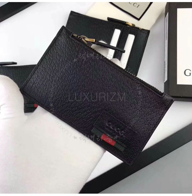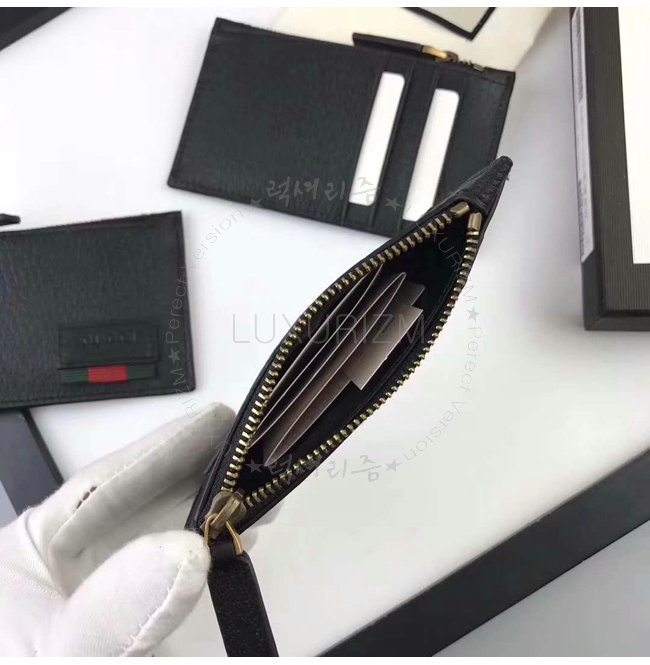 GUCCI-428757 1060 구찌 Web 블랙 가죽 카드 케이스