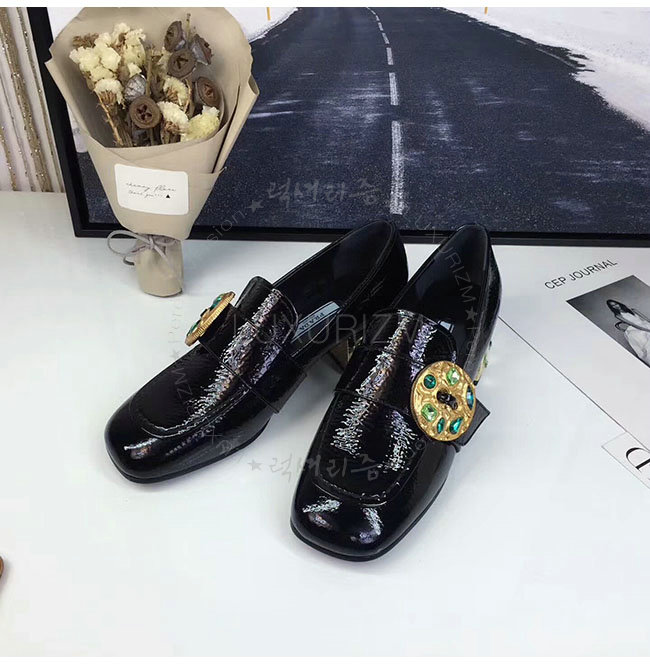 PRADA-1D963H 프라다 블랙 페이턴트 가죽 모카신 여성용