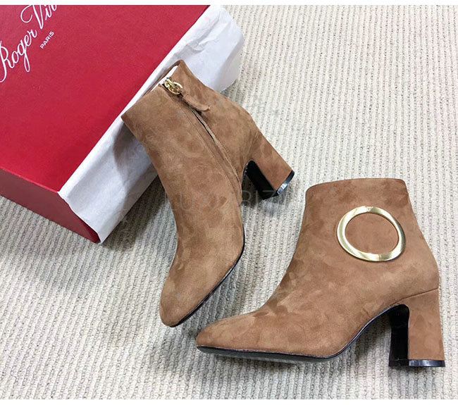 ROGER VIVIER-43717281O20 로저비비에 브라운 스웨이드 청키 트럼펫 라운드 버클 앵클 부츠 여성용