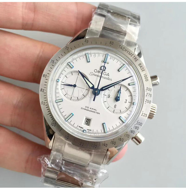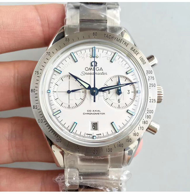 [스페셜오더]OMEGA-오메가 스피드마스터 57코-액시얼 크로노그래프 스틸 화이트다이얼 워치 41.5mm
